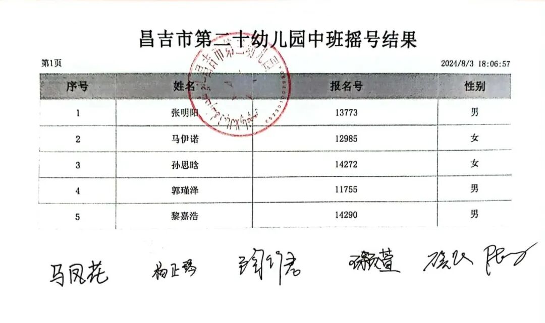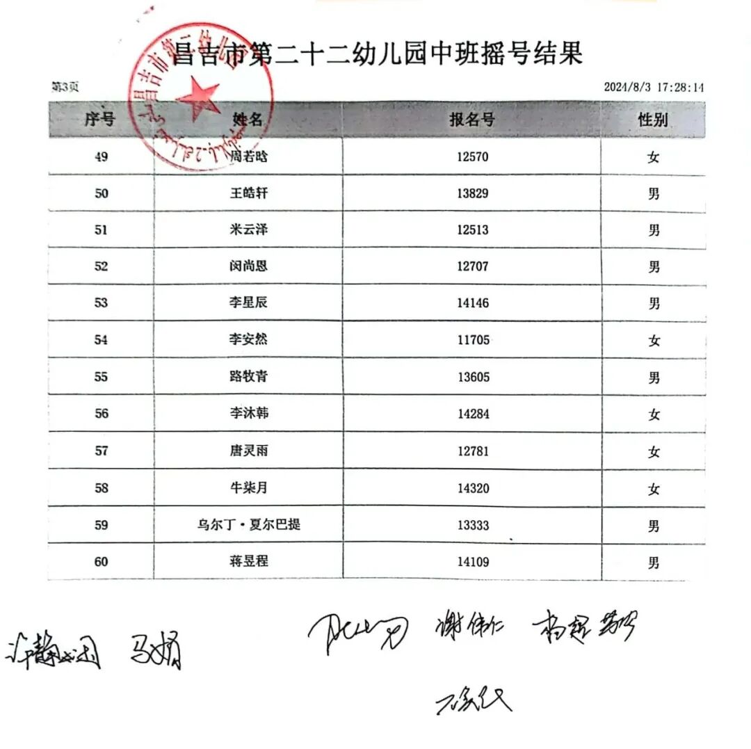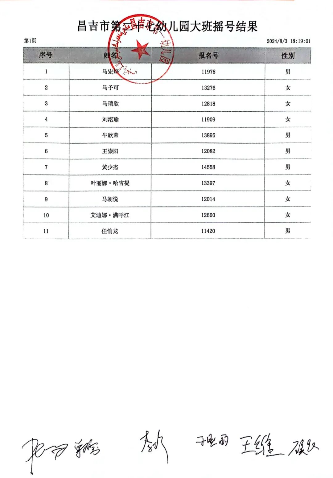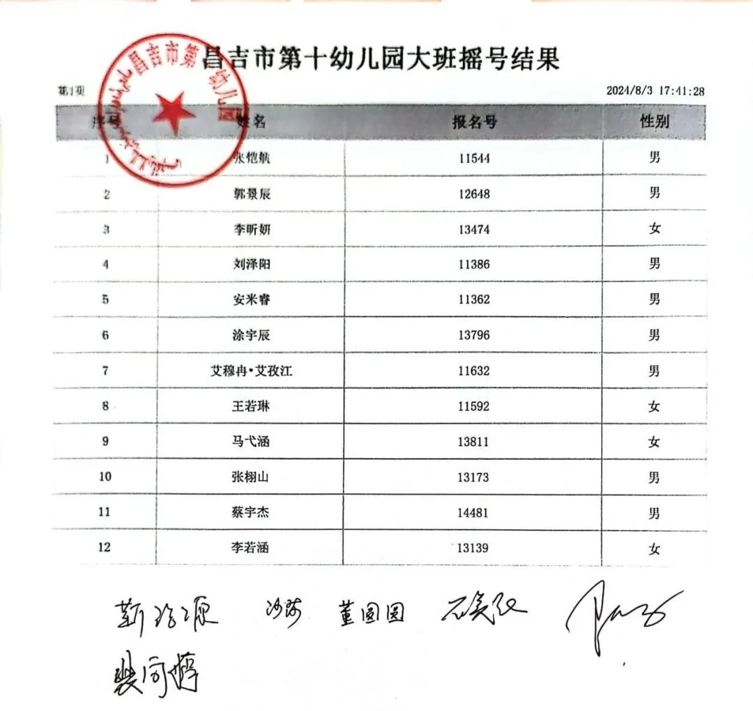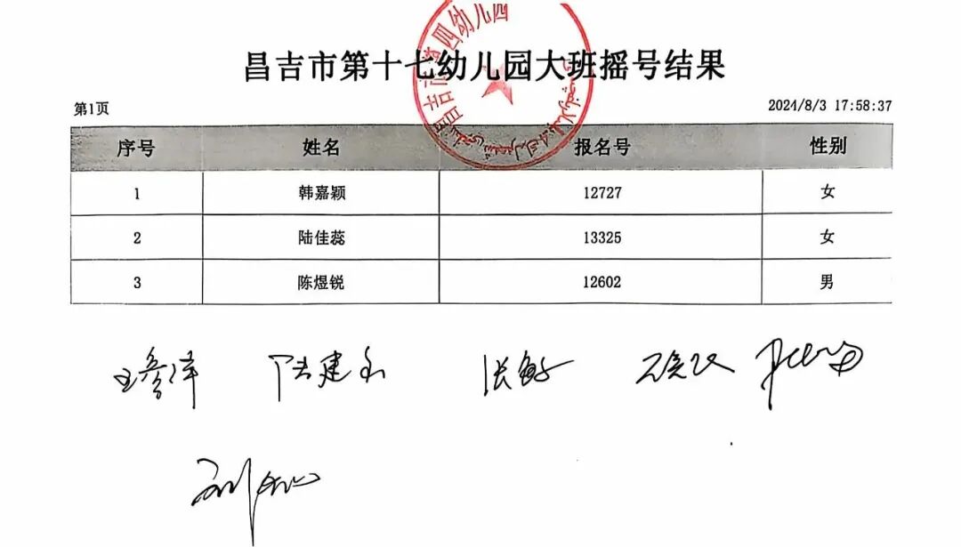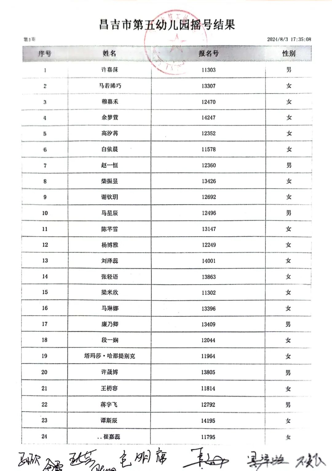 昌吉市2024年秋季城区公办园电脑摇号派位结果公示