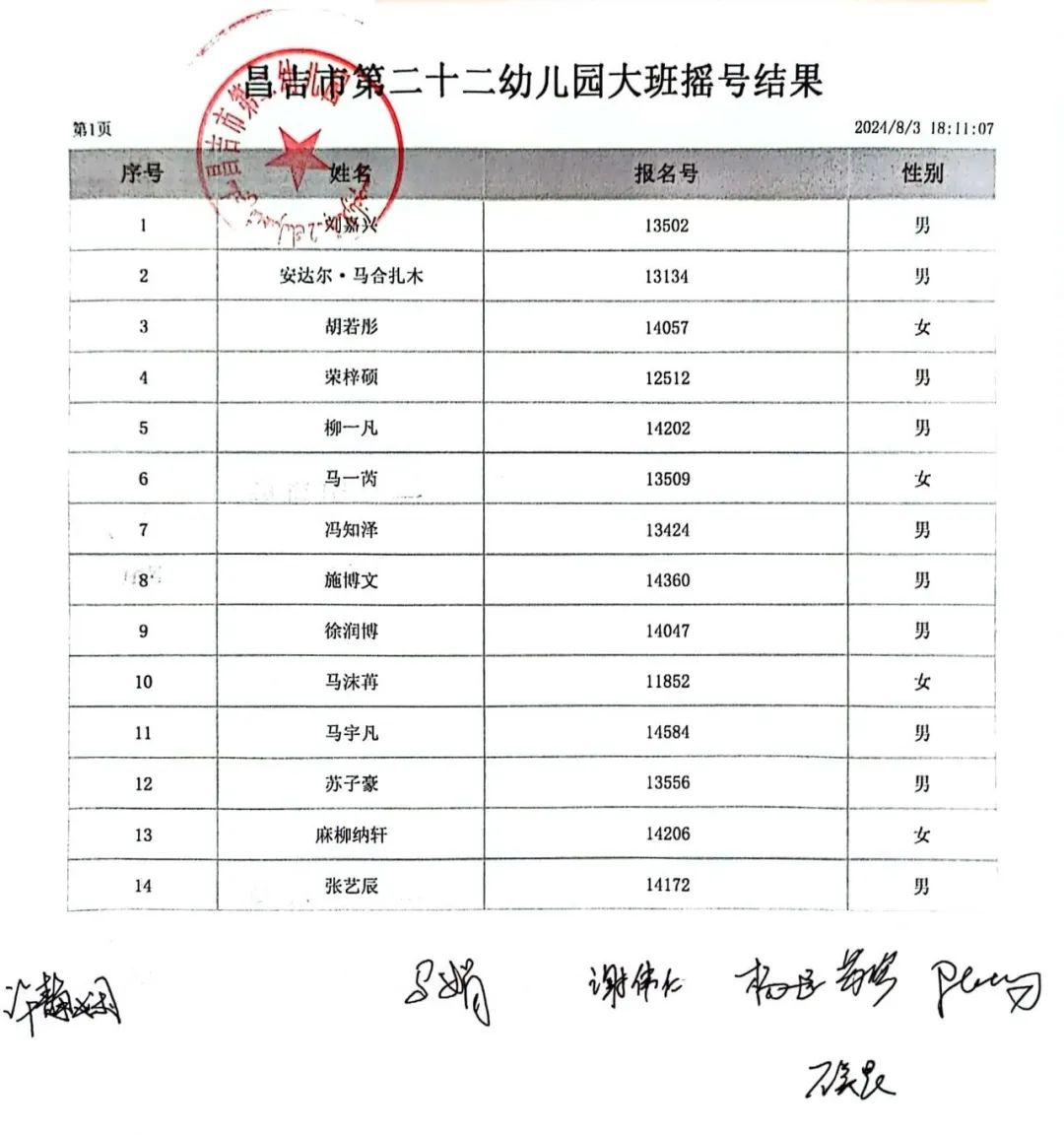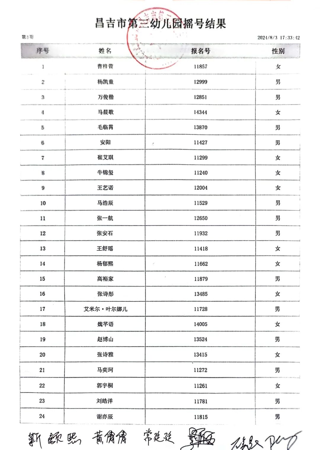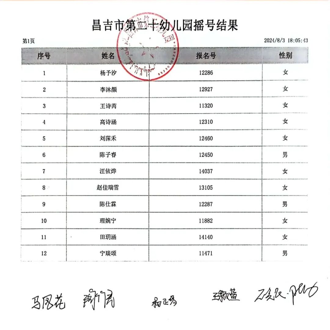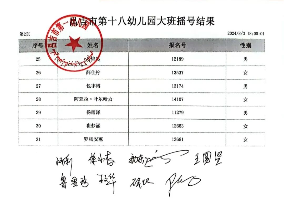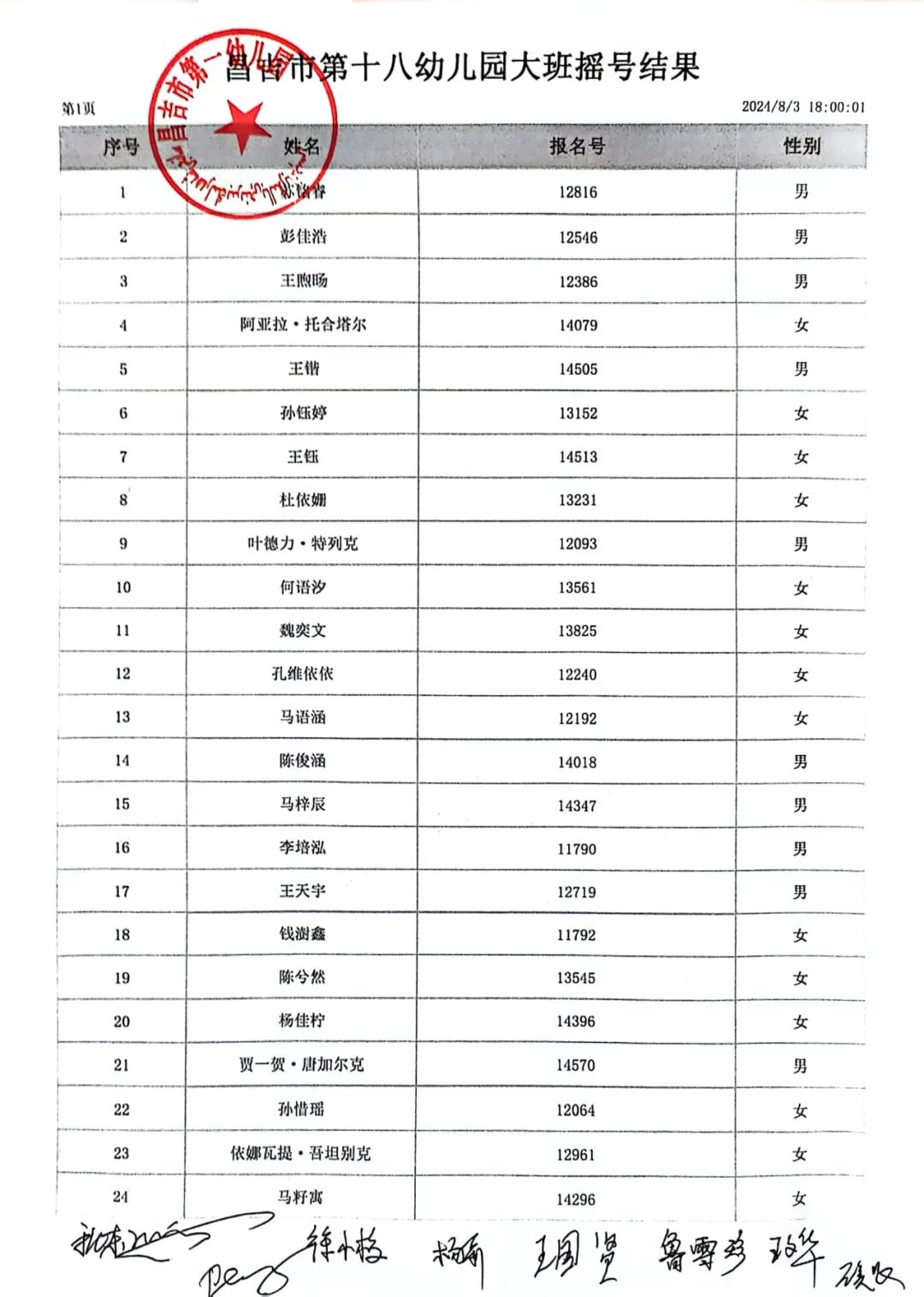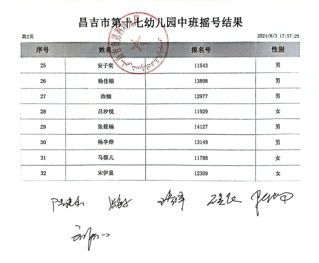 昌吉市2024年秋季城区公办园电脑摇号派位结果公示