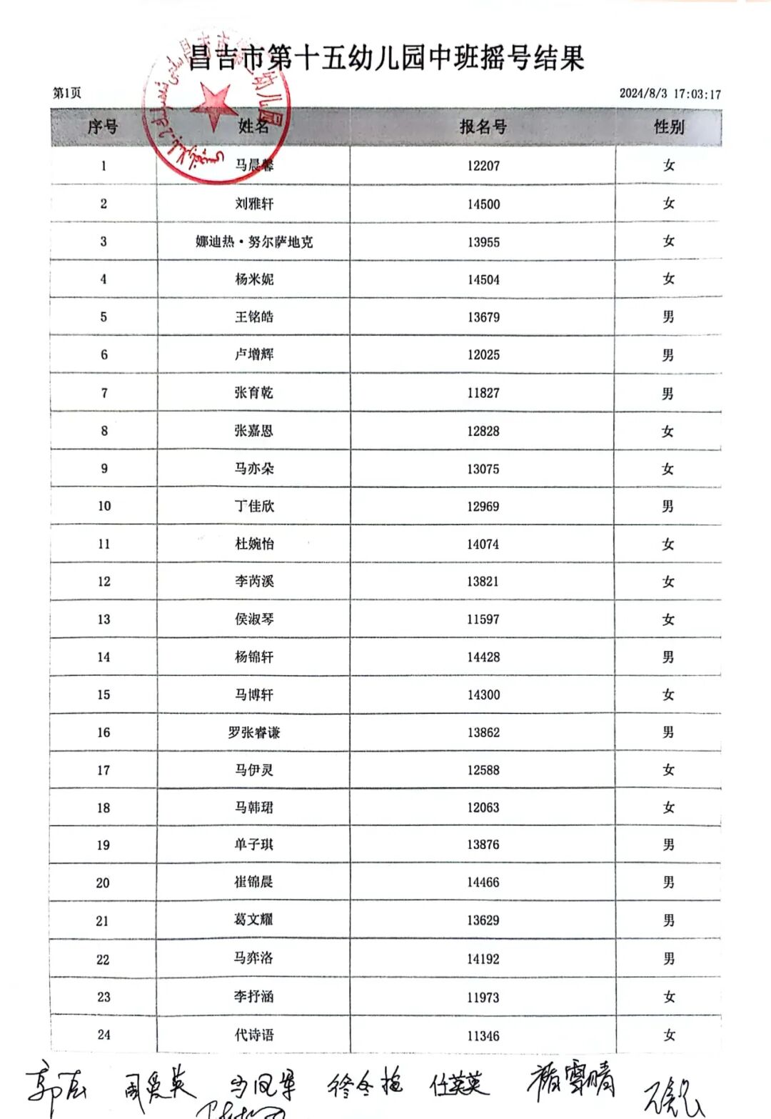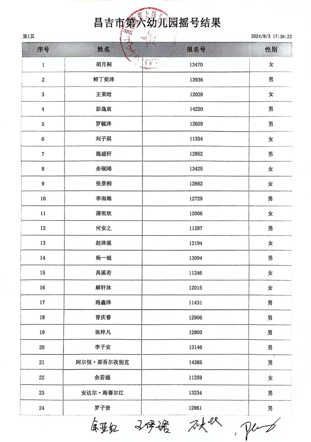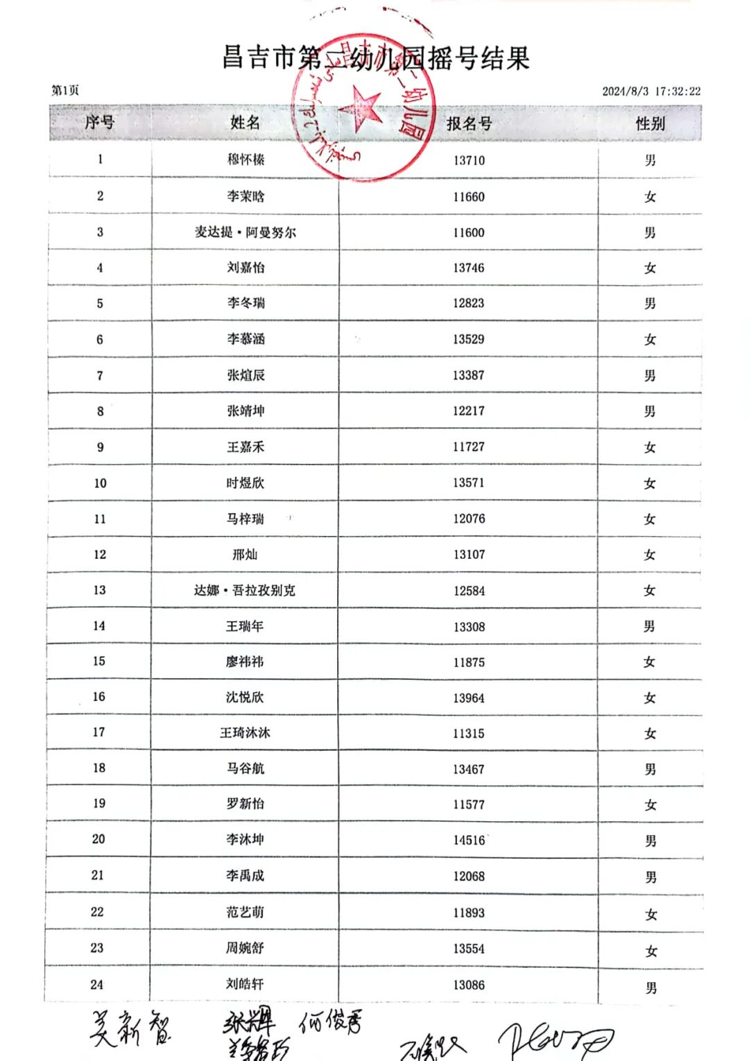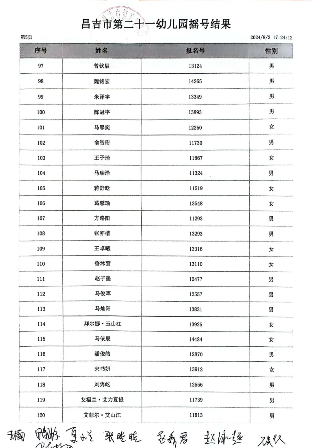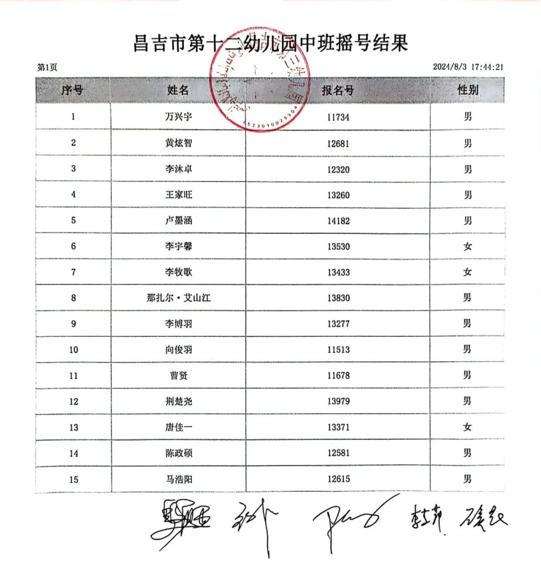昌吉市2024年秋季城区公办园电脑摇号派位结果公示