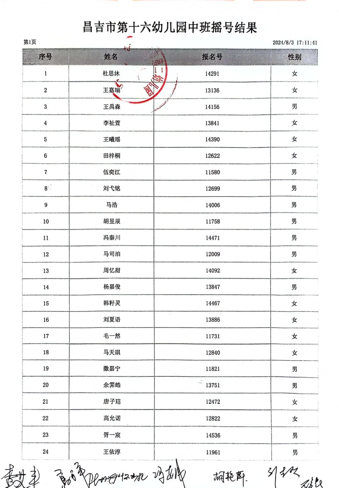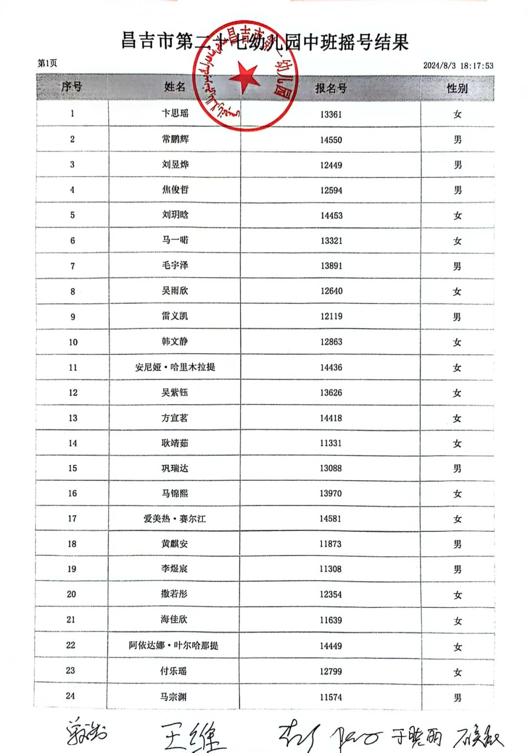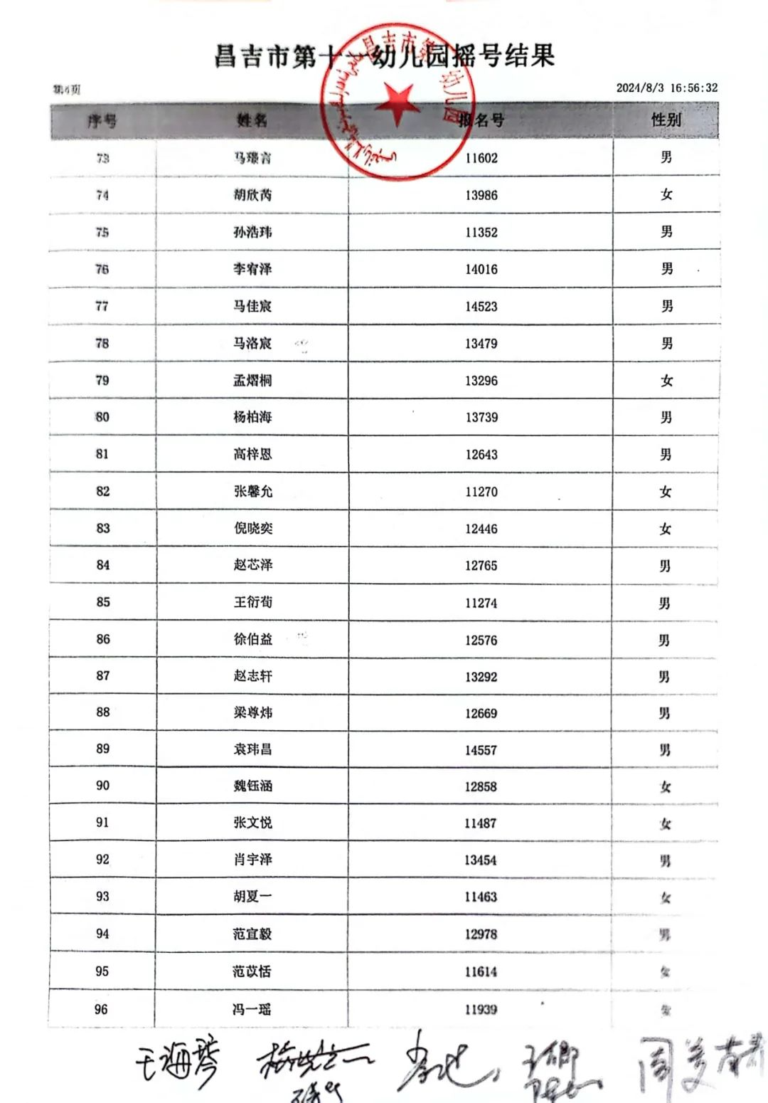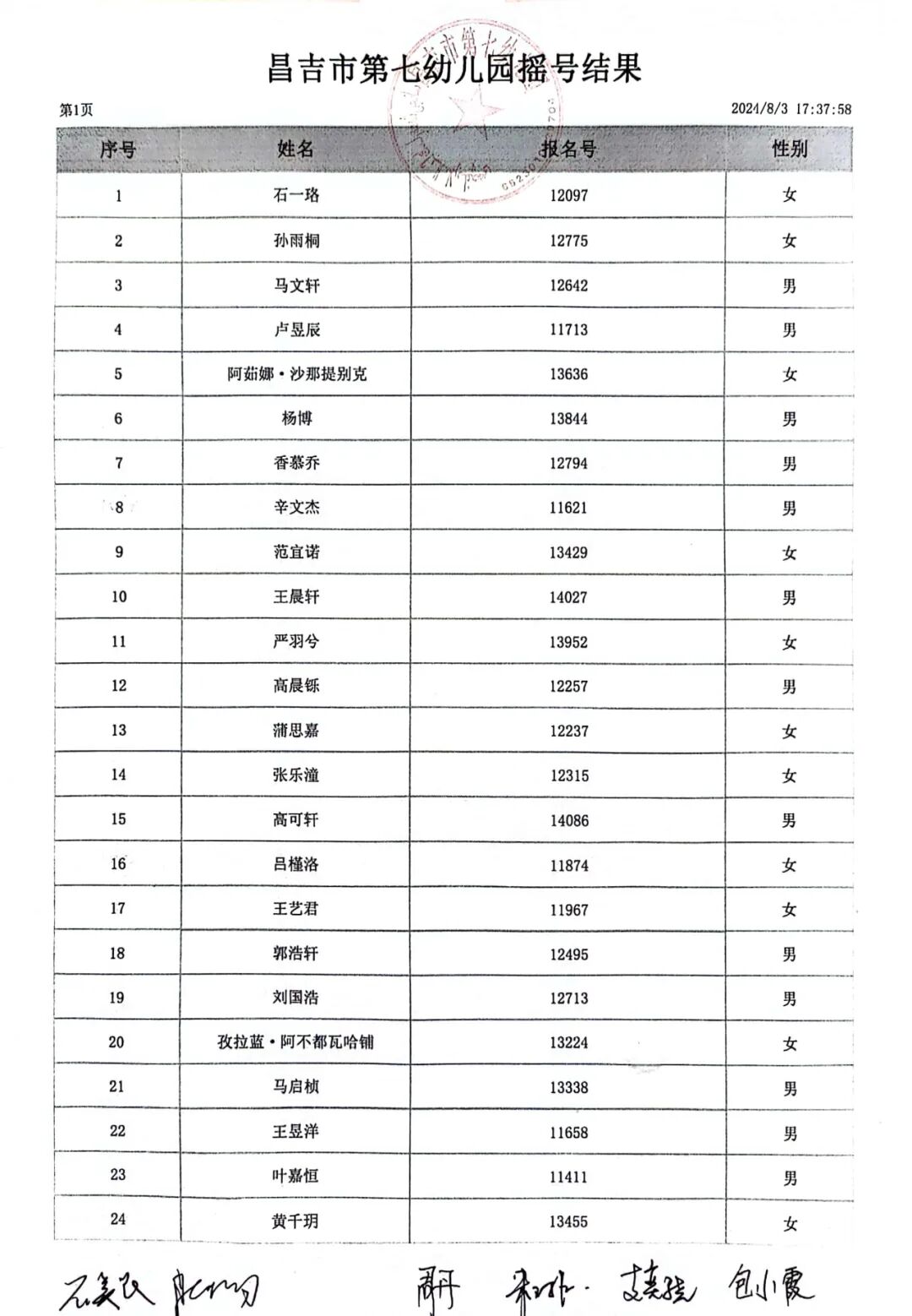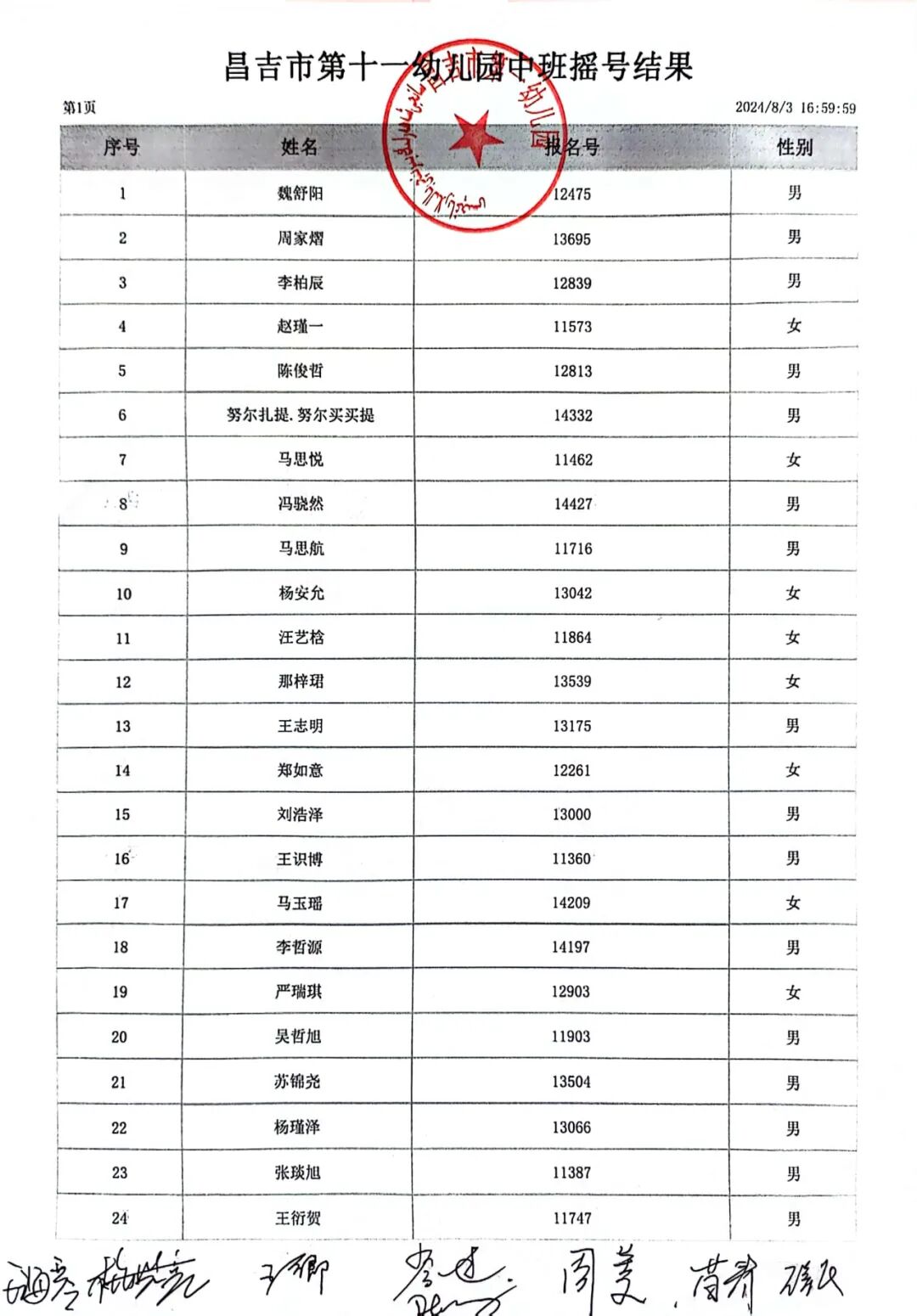 昌吉市2024年秋季城区公办园电脑摇号派位结果公示