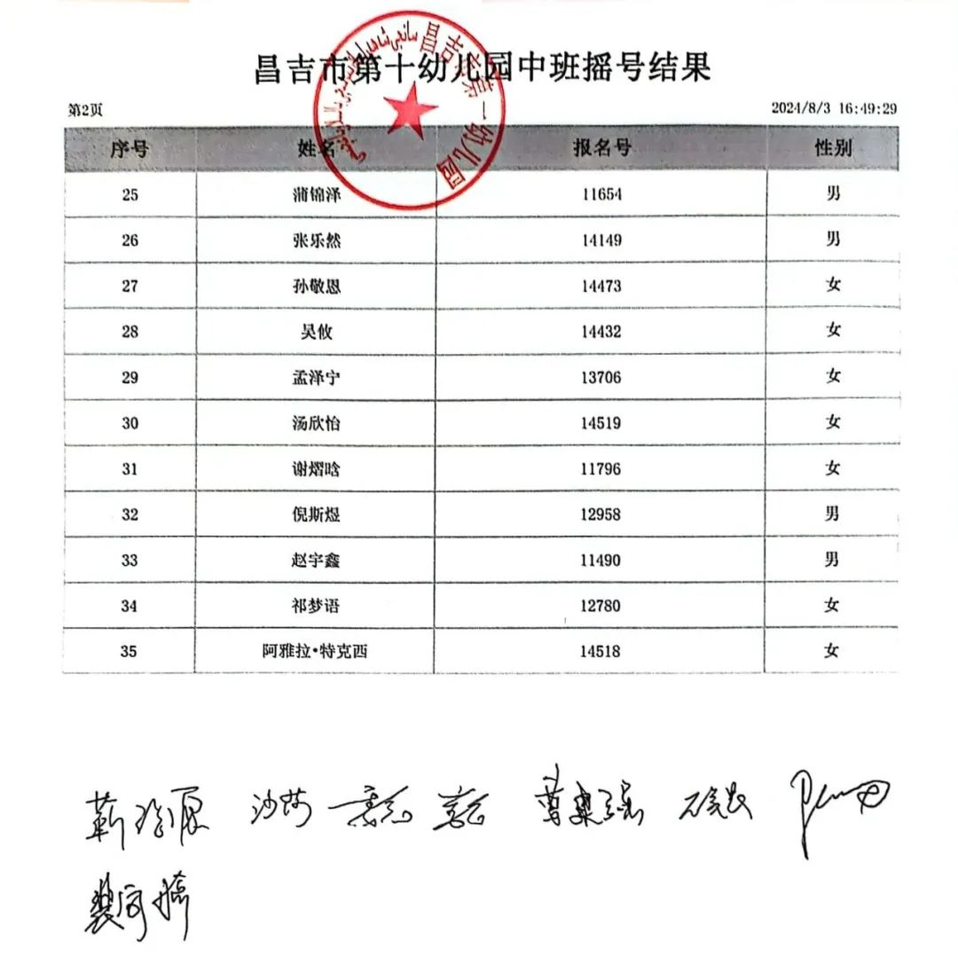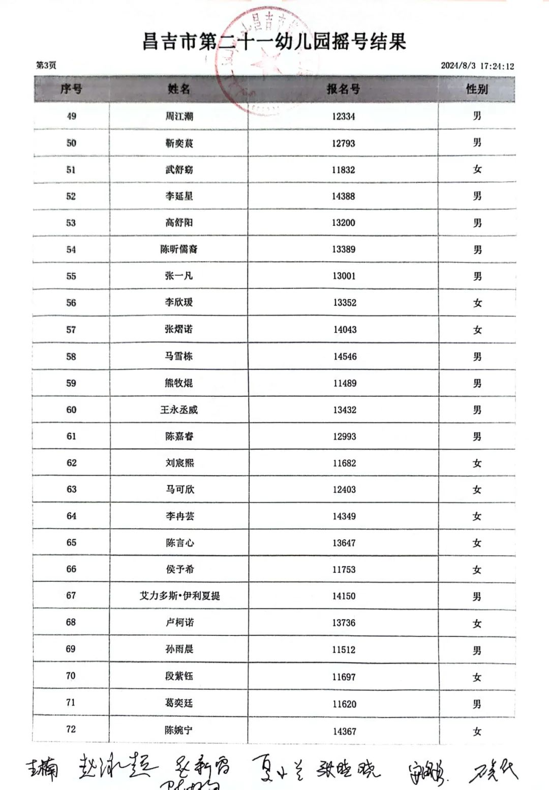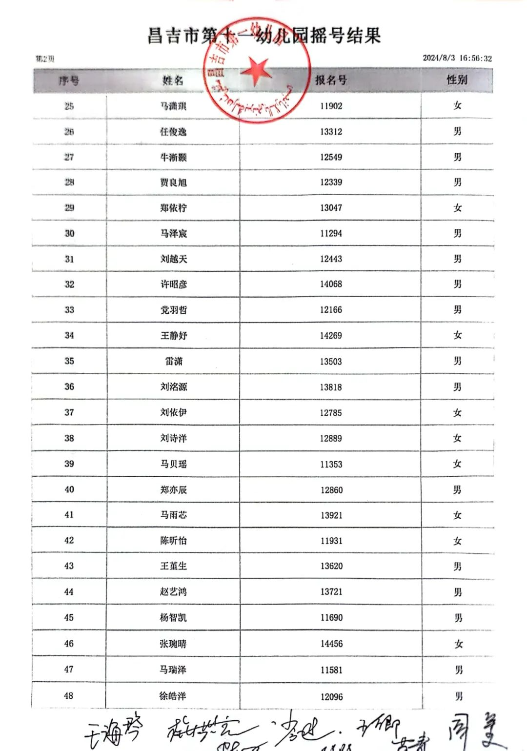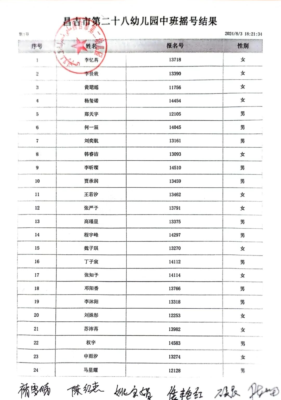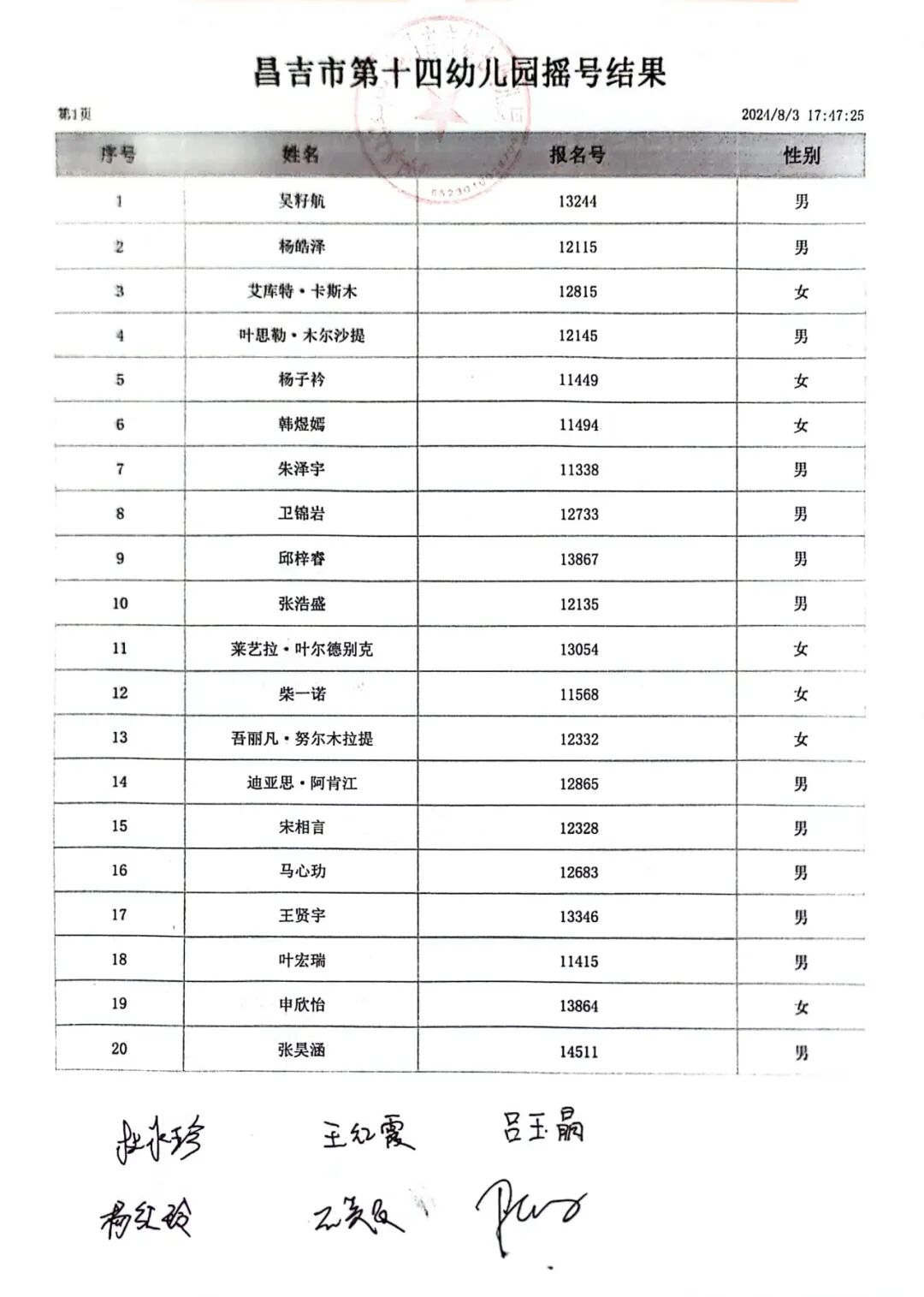 昌吉市2024年秋季城区公办园电脑摇号派位结果公示