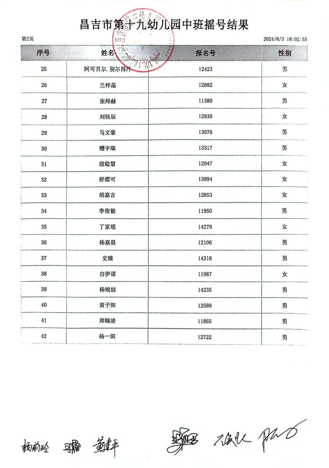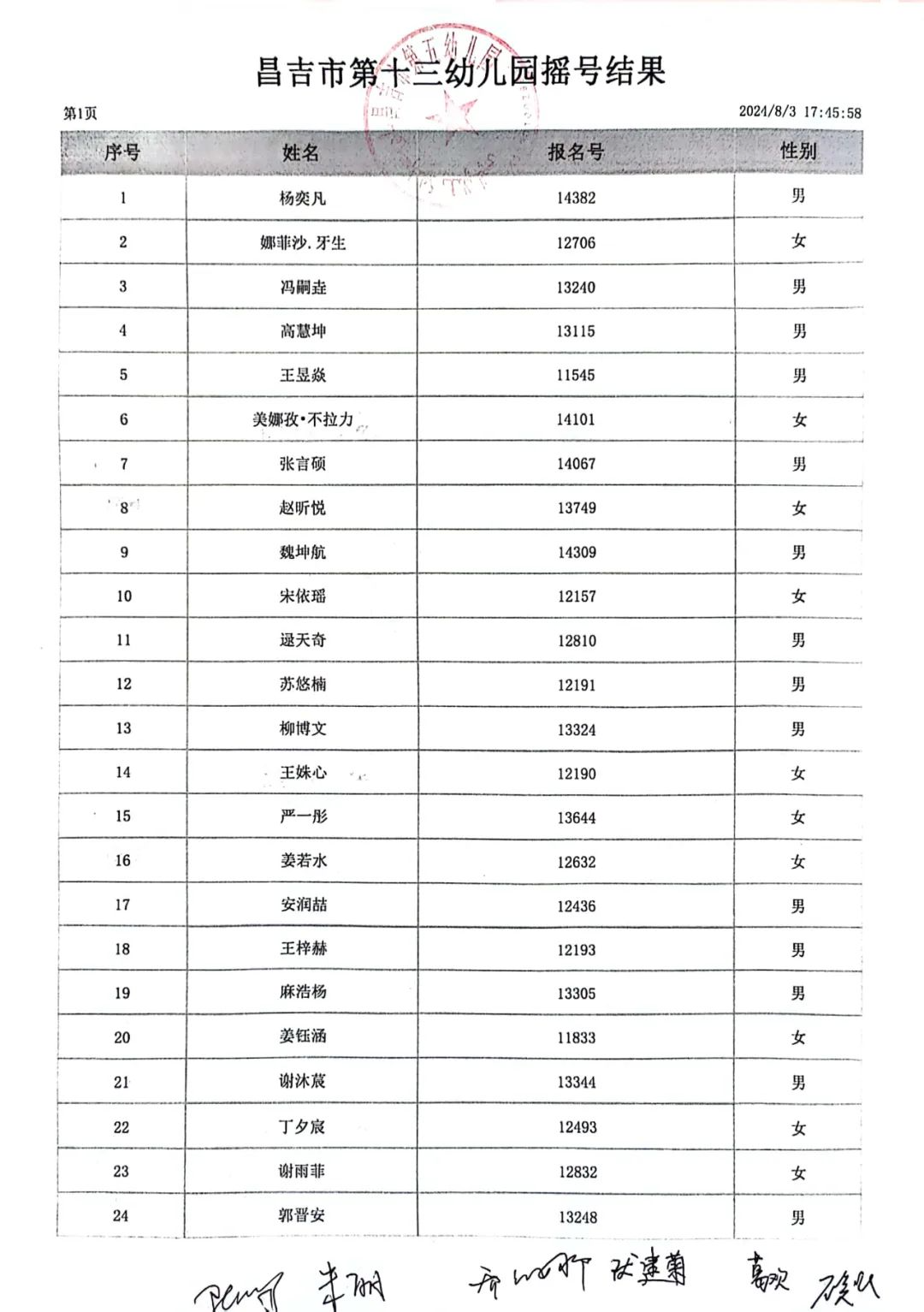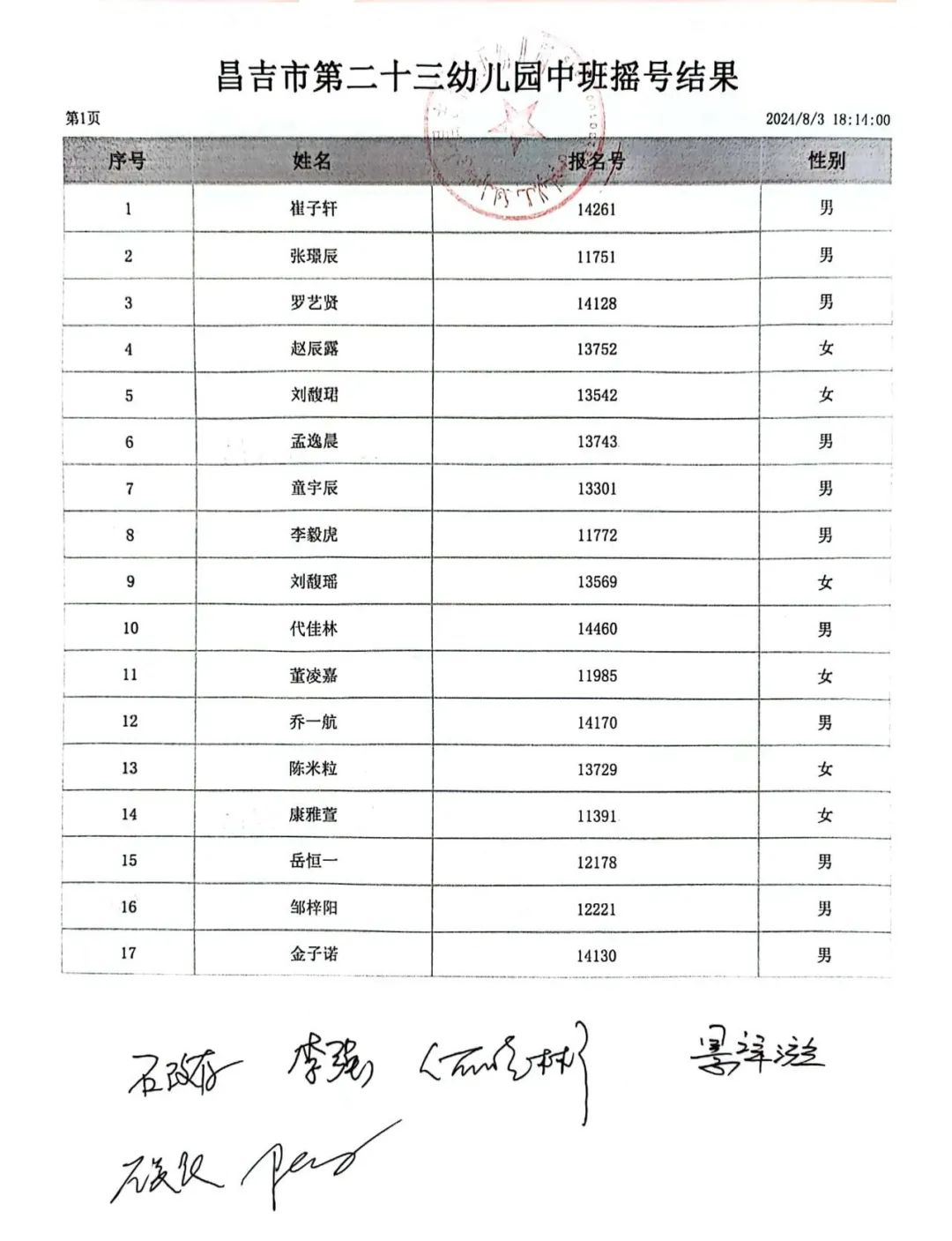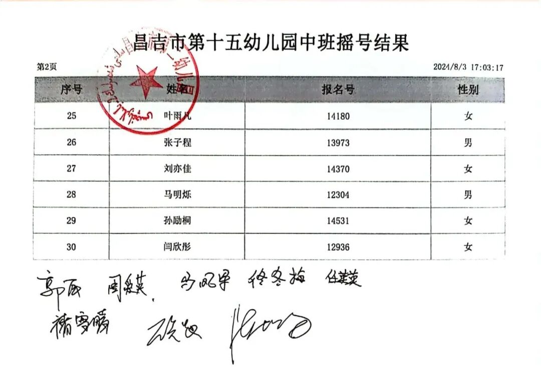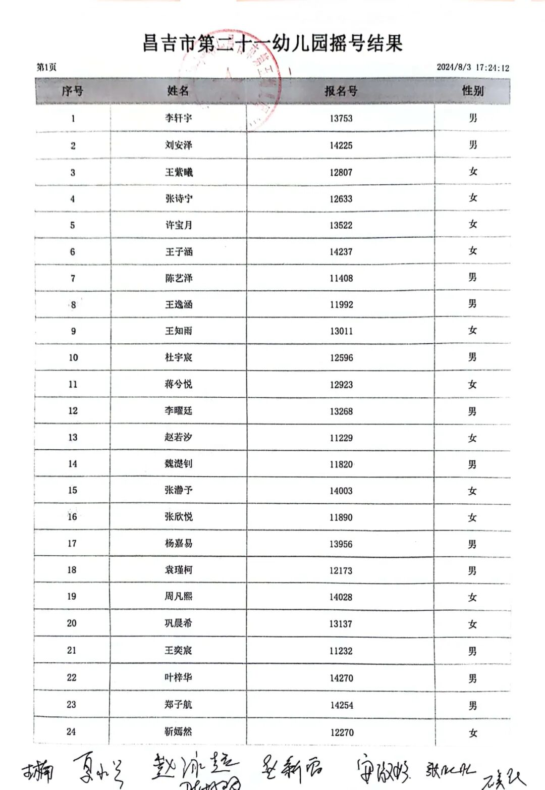 昌吉市2024年秋季城区公办园电脑摇号派位结果公示