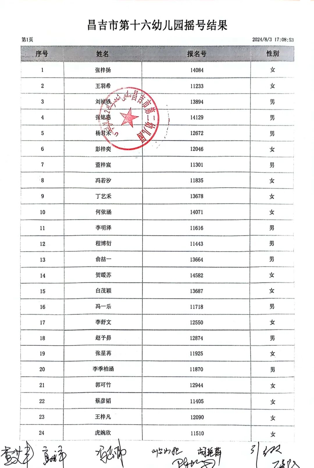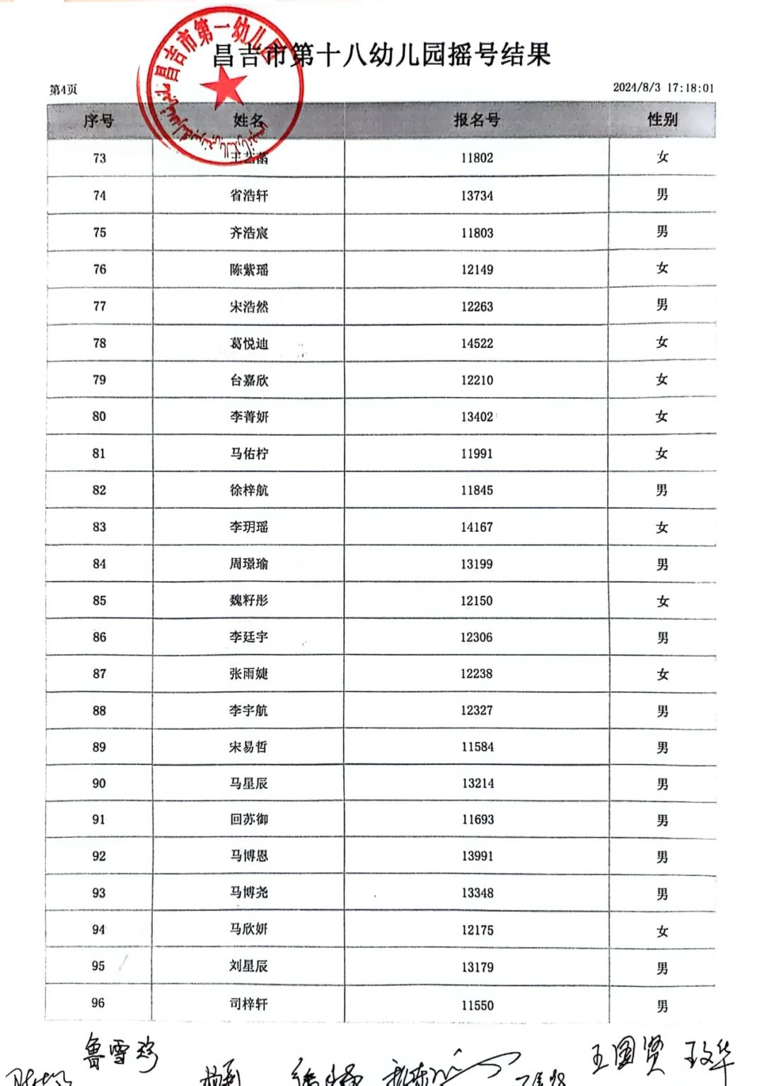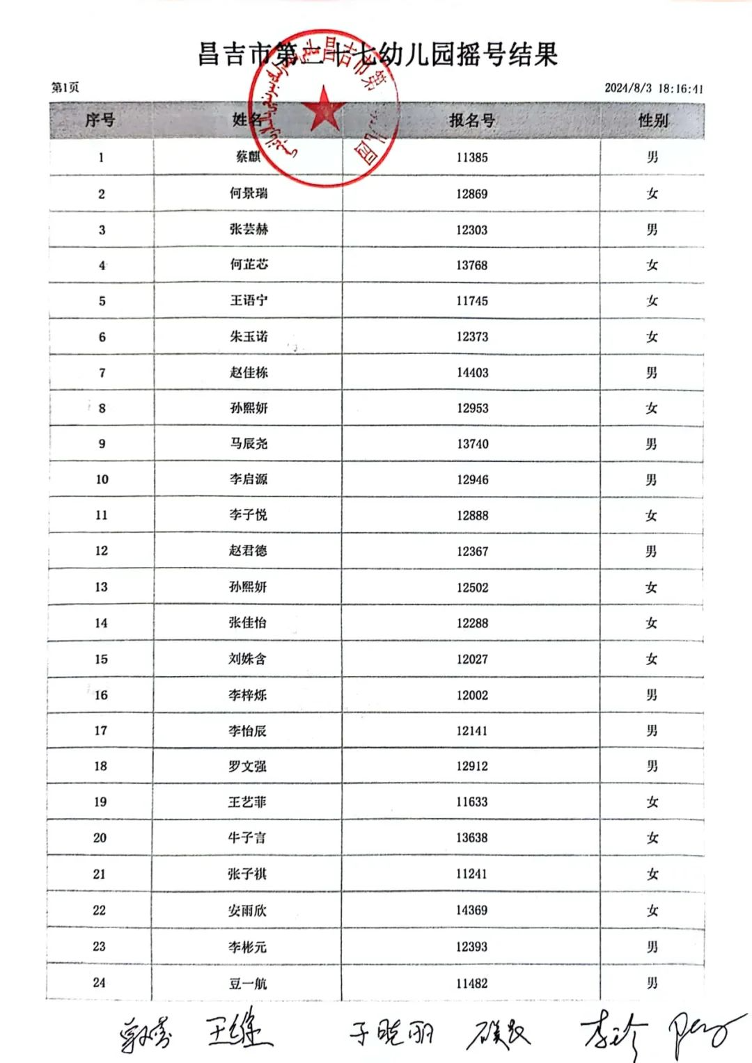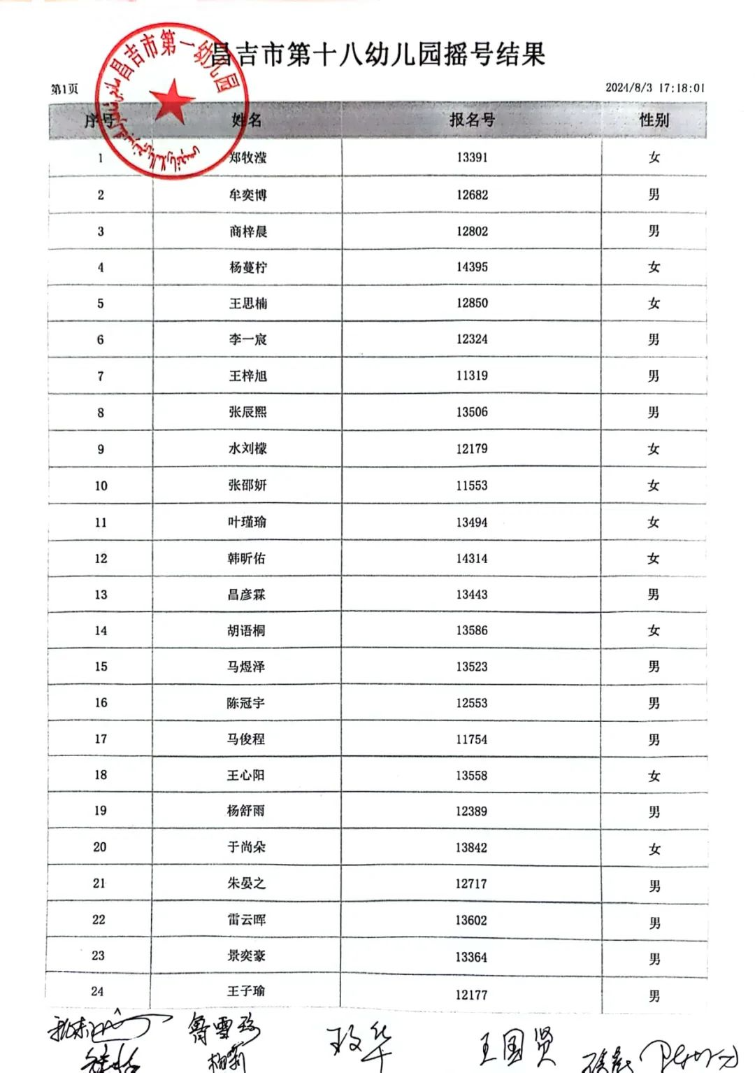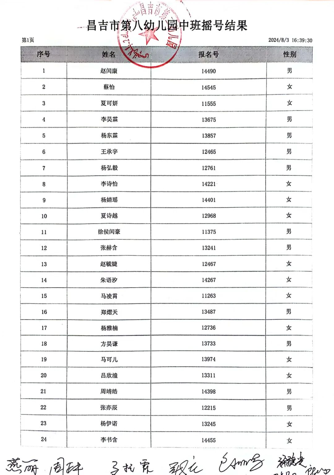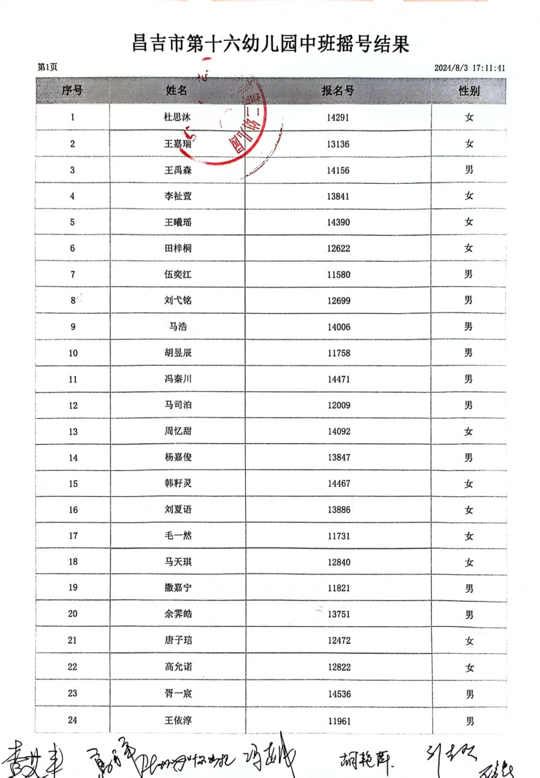 昌吉市2024年秋季城区公办园电脑摇号派位结果公示