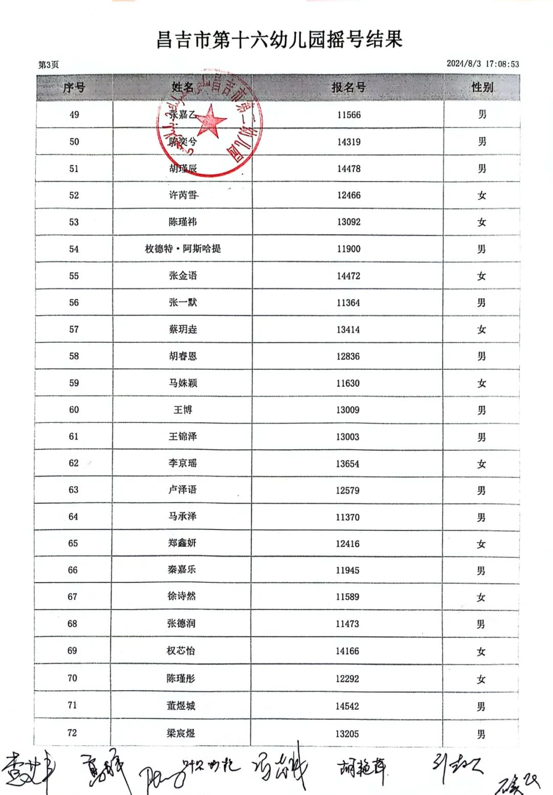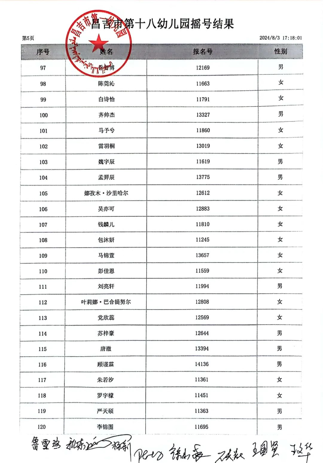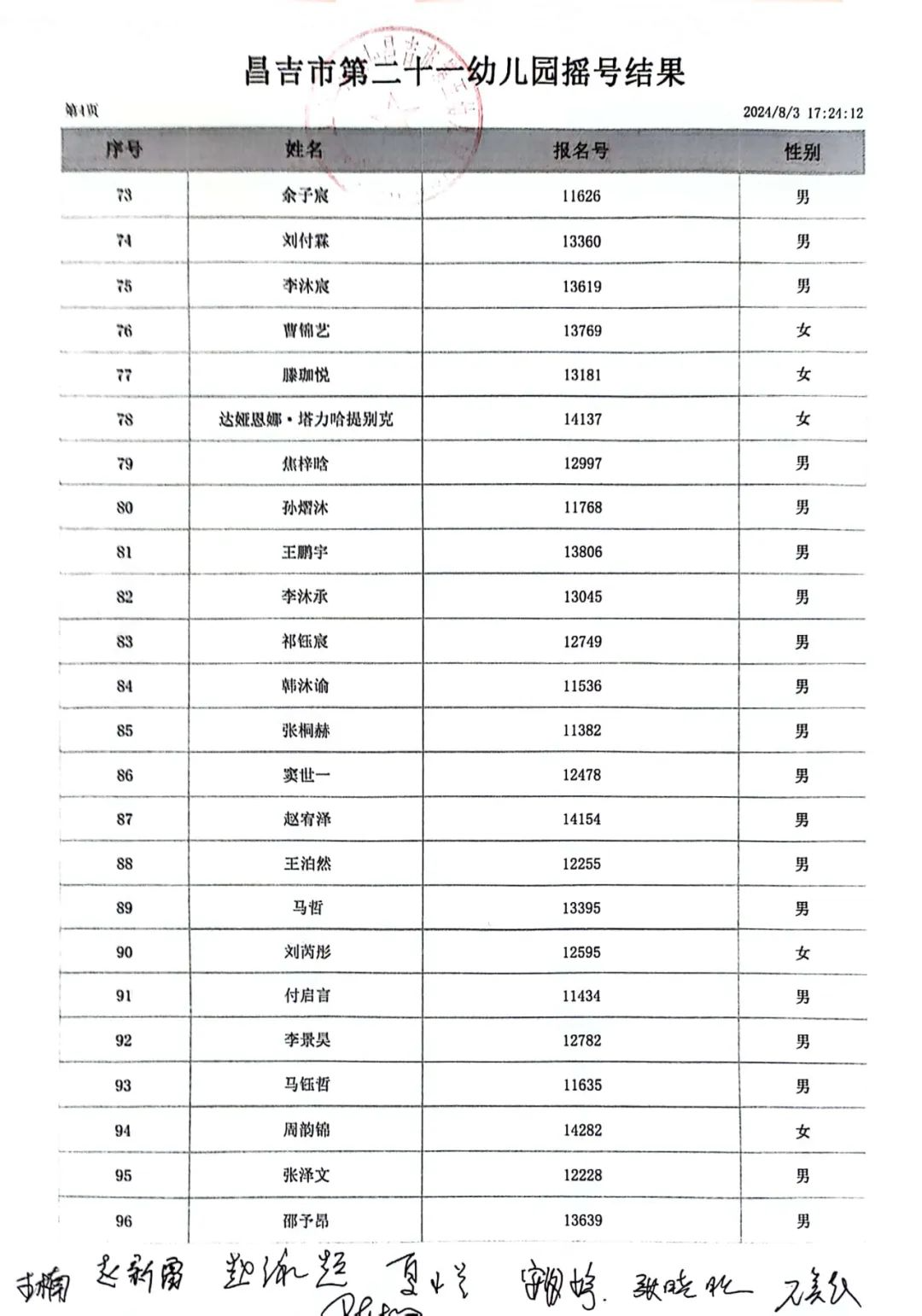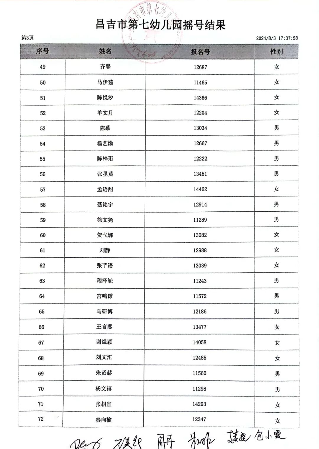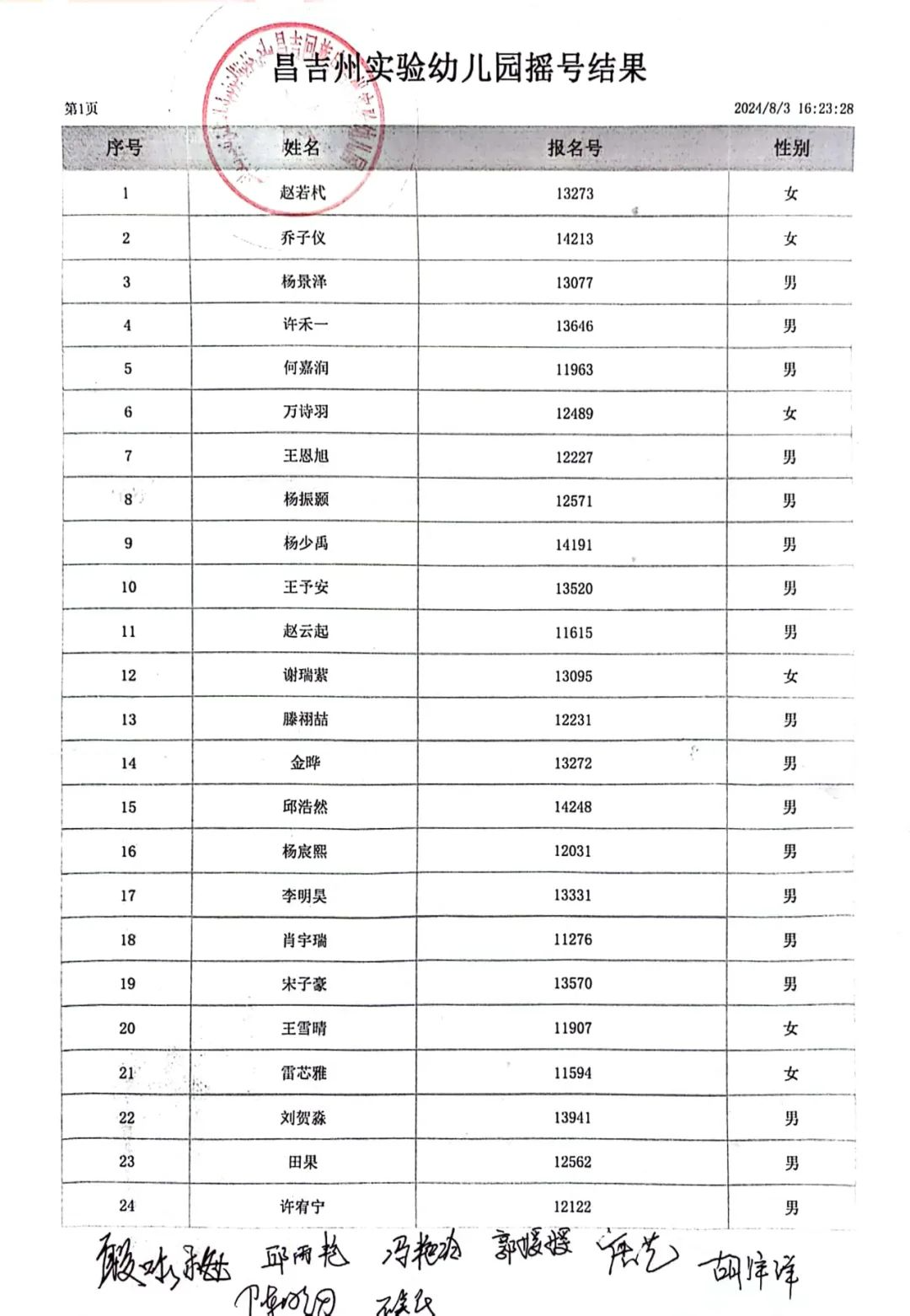 昌吉市2024年秋季城区公办园电脑摇号派位结果公示