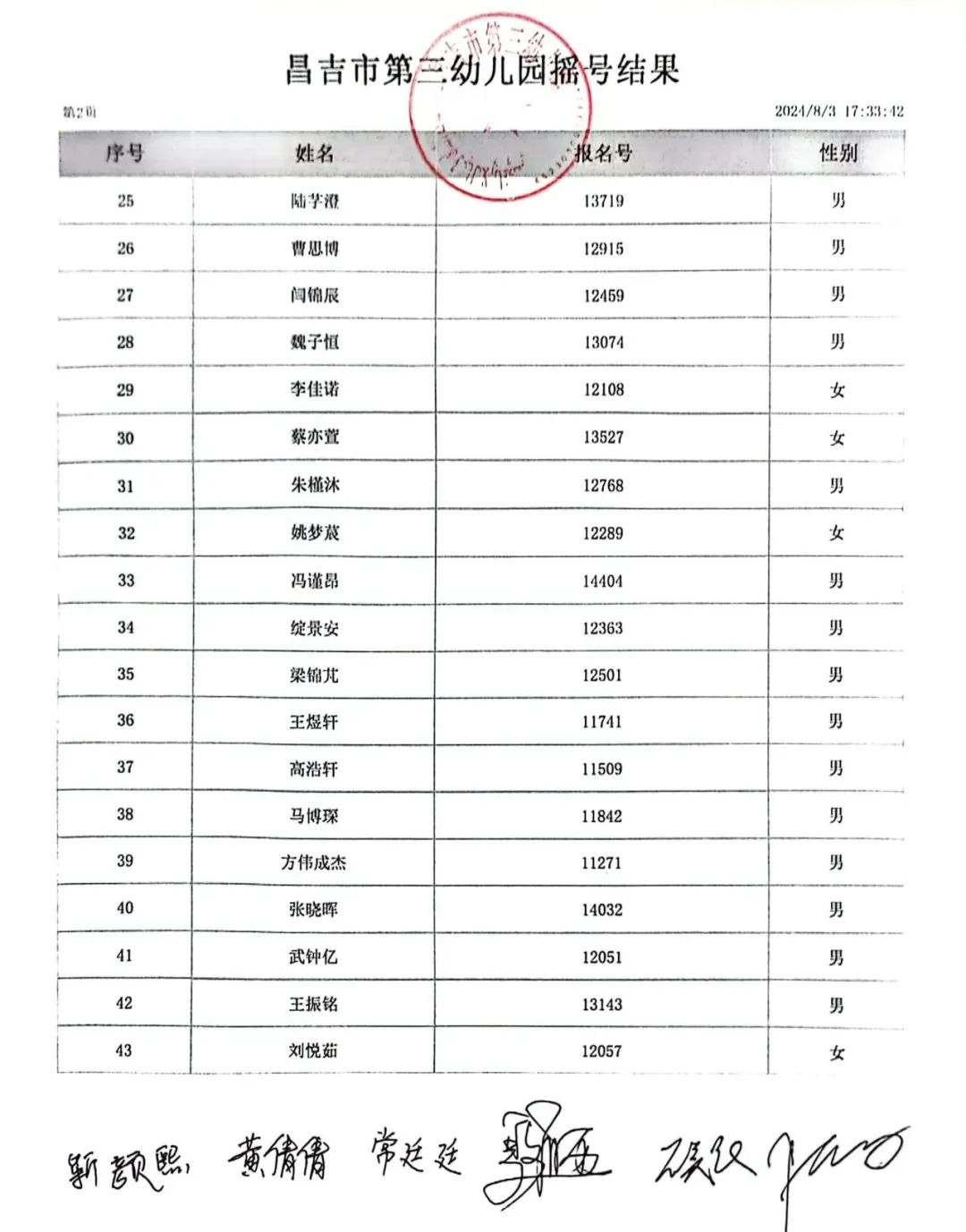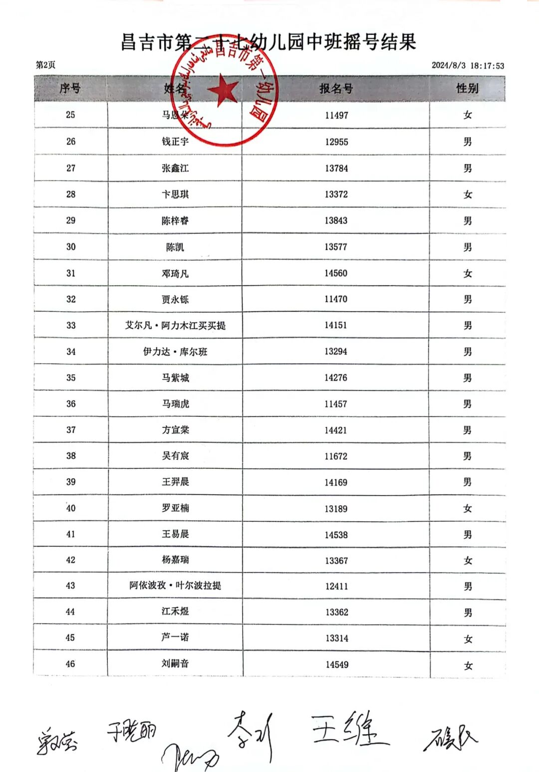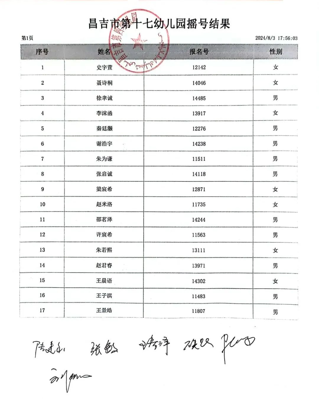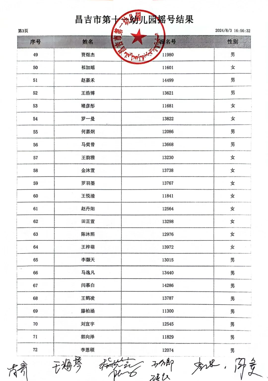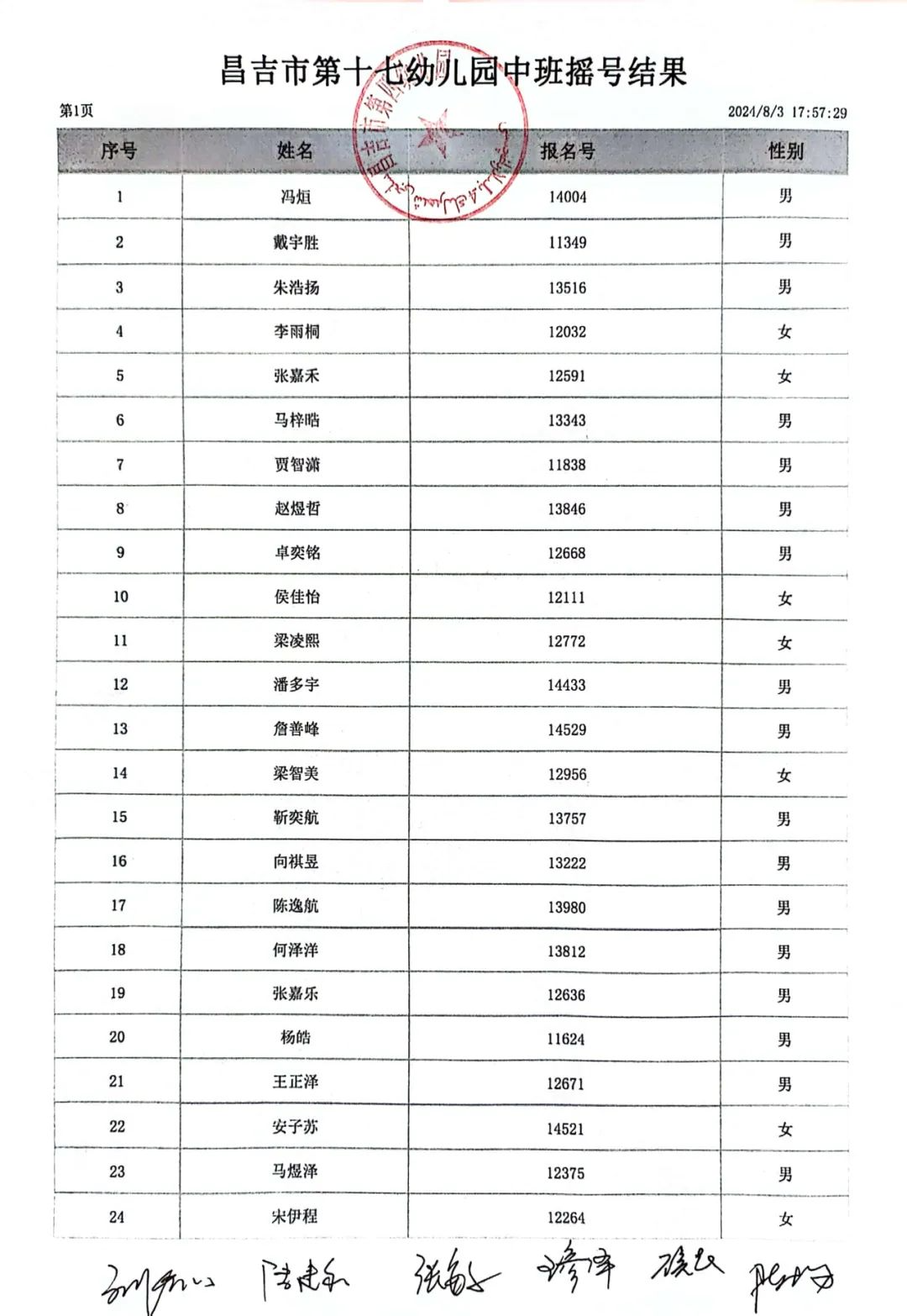 昌吉市2024年秋季城区公办园电脑摇号派位结果公示