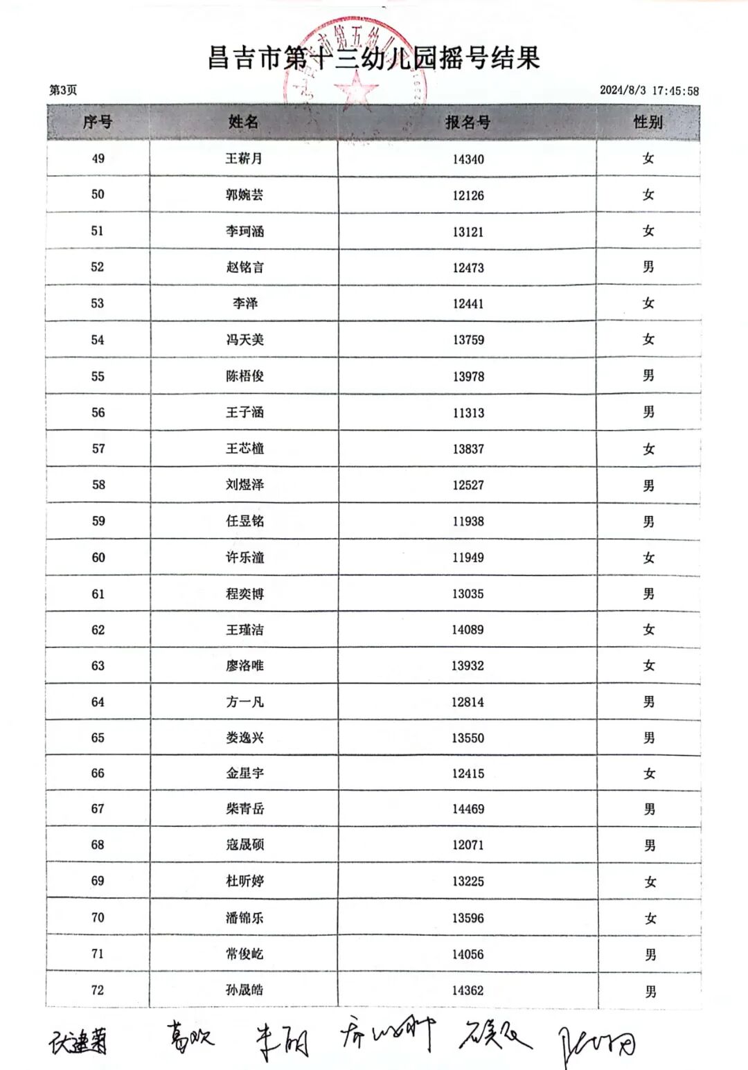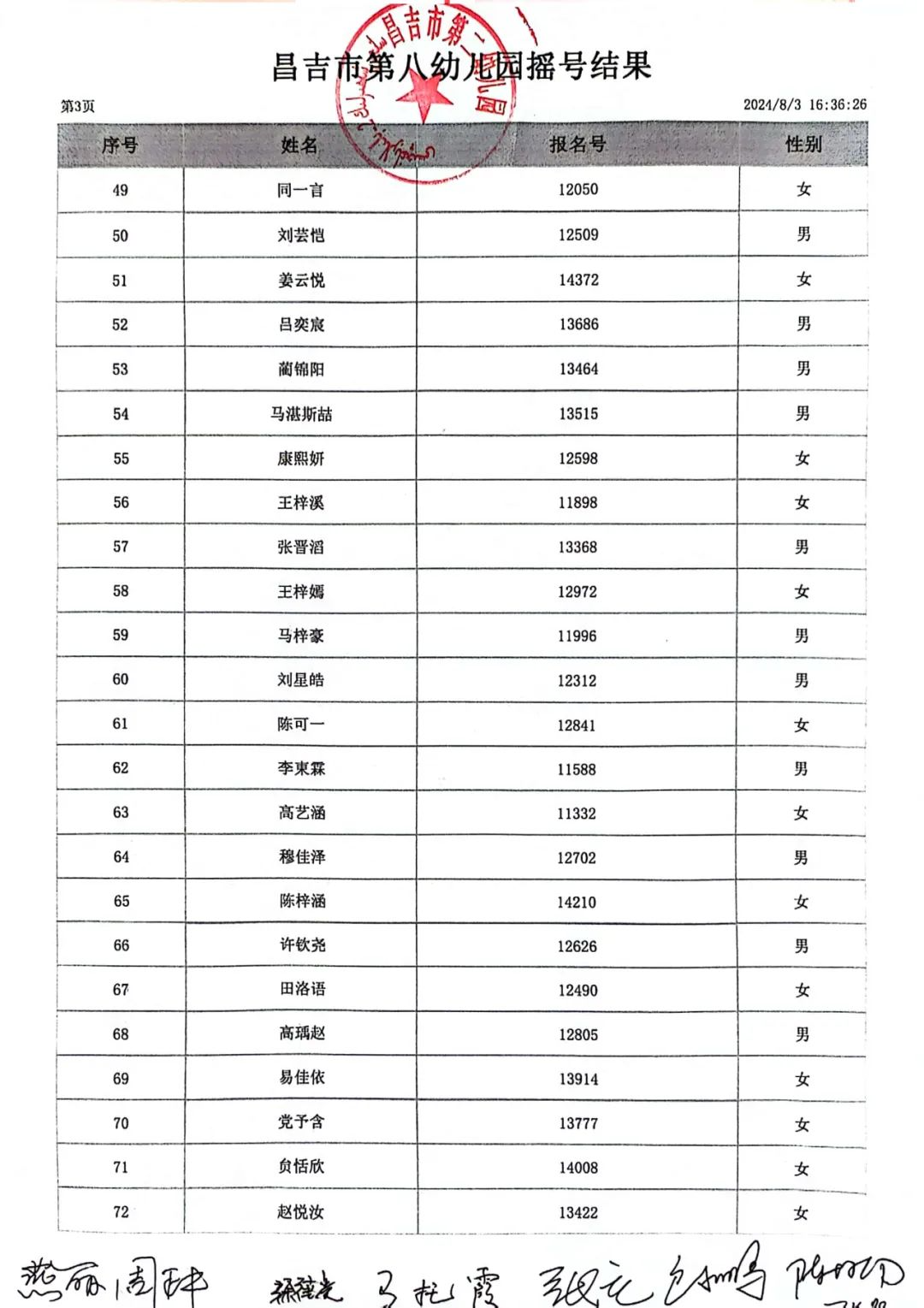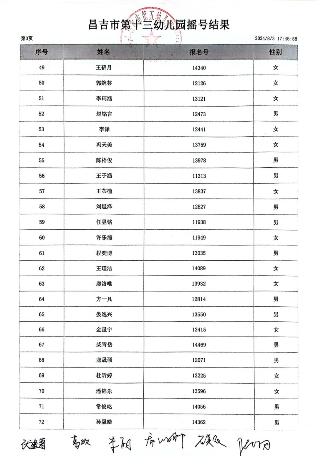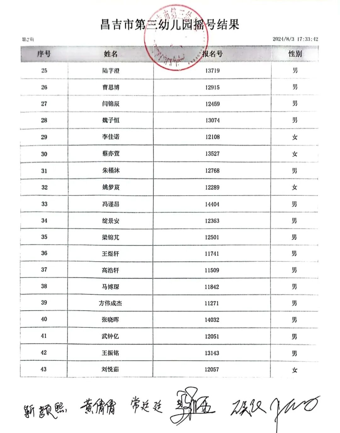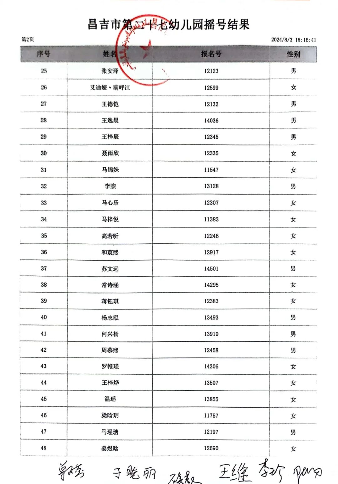 昌吉市2024年秋季城区公办园电脑摇号派位结果公示