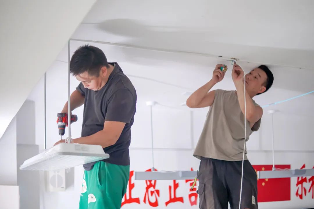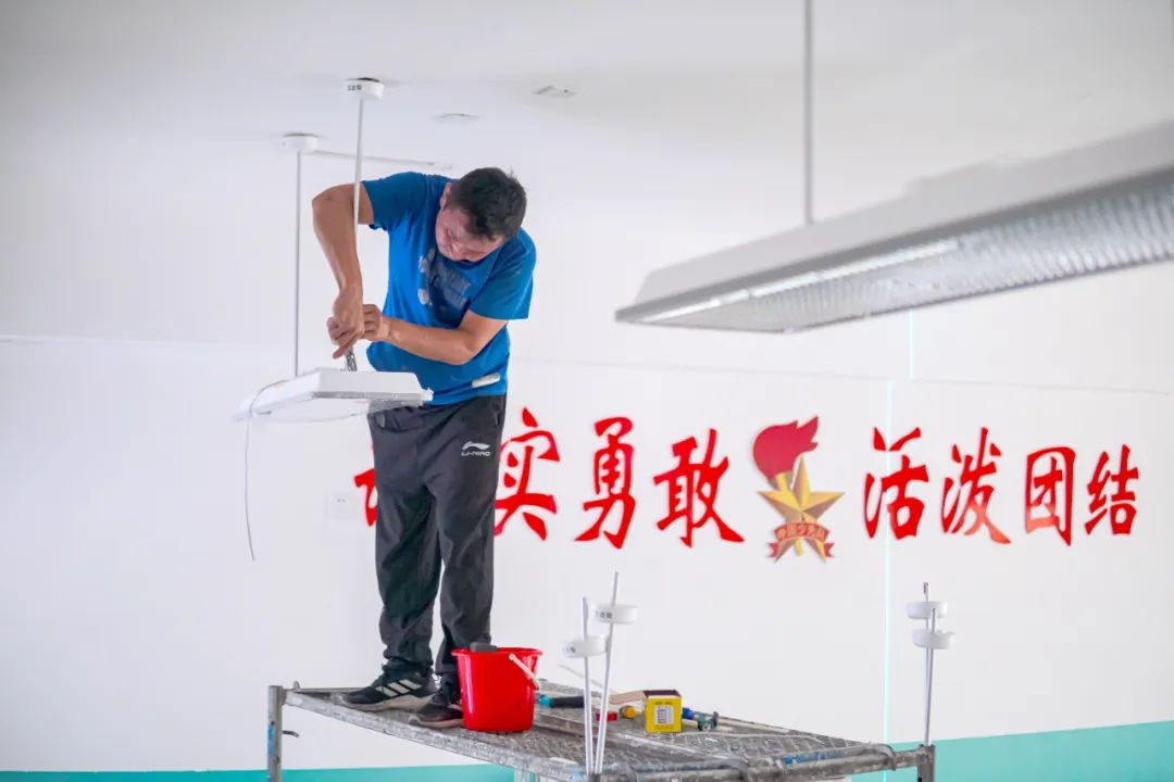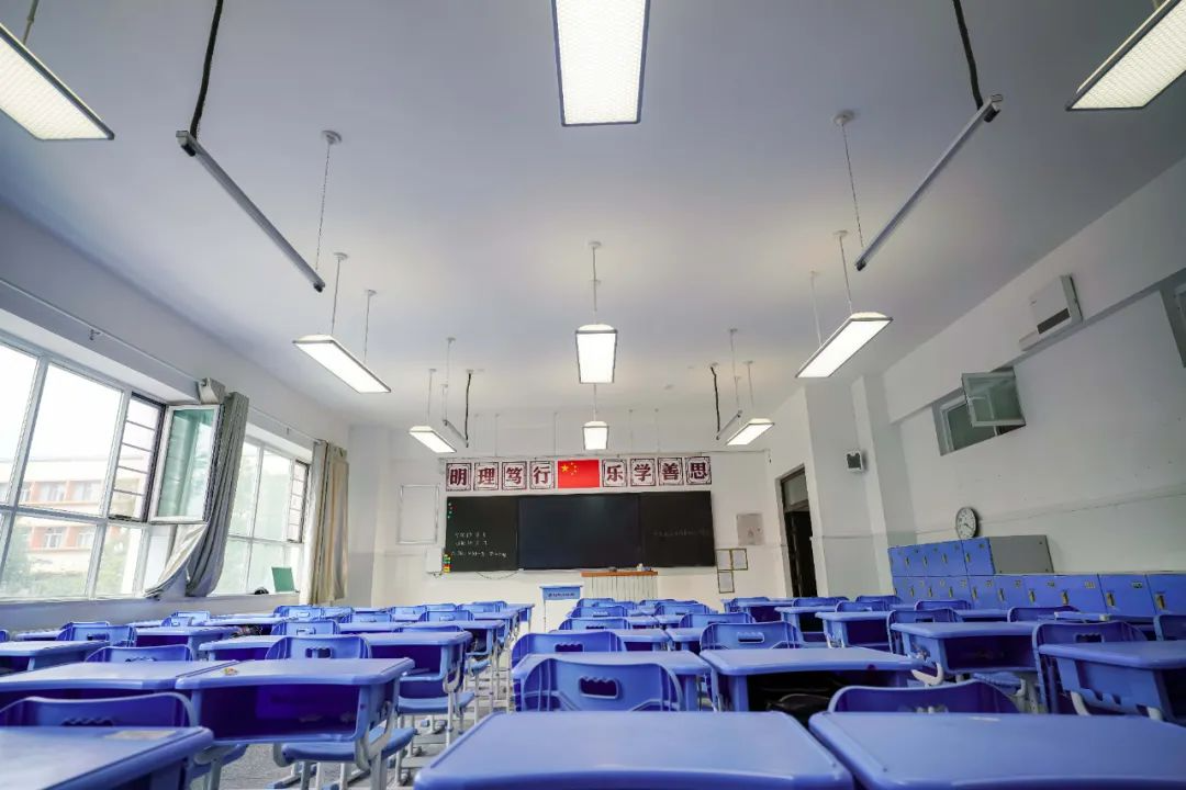 ▲2024年8月22日,工作人员在昌吉市第十九小学教室安装新型LED护眼灯。杨斌 摄 8月22日,在昌吉市第十九小学,施工人员正在教室里加紧安装新型LED护眼灯,确保在开学前施工完毕,正常投入使用。 昌吉市第十九小学负责人王建忠说:“我们学校44间教室全部进行了护眼灯改造,每间教室按照9盏护眼灯和3盏黑板灯进行配置。新采购的这批护眼灯,它的光线比较柔和,具有防眩晕和蓝光功能,保障孩子们在舒适的灯光下学习活动。” ▲2024年8月23日,昌吉市第一中学已安装新型LED护眼灯教室。杨斌 摄