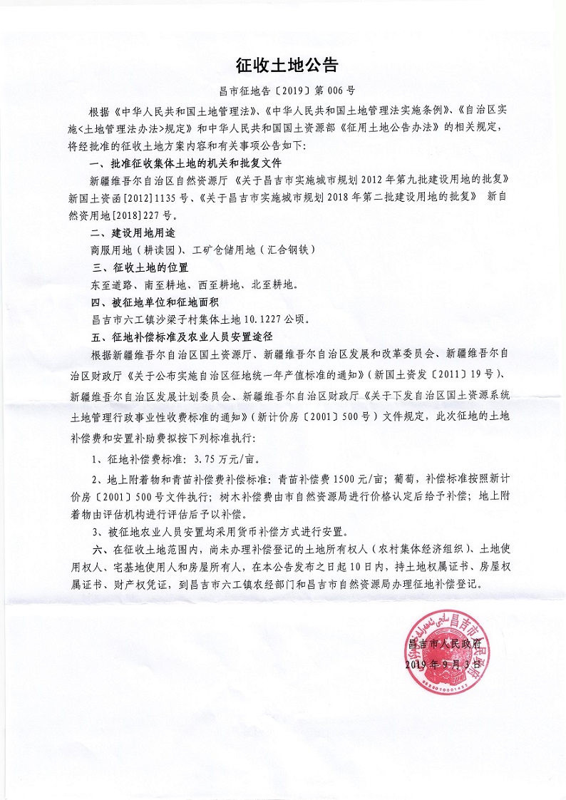 昌市征地告【2019】第006号