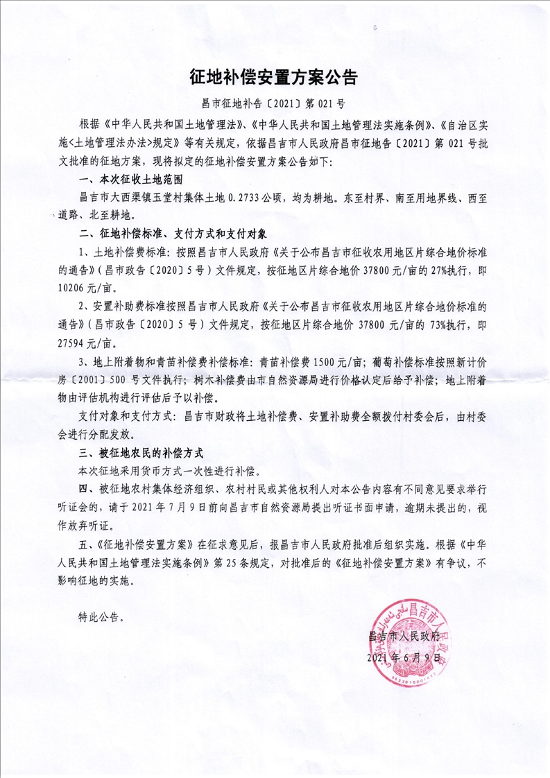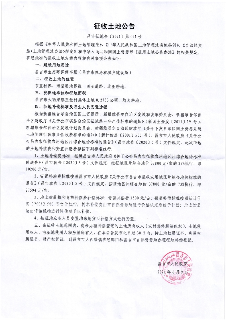 昌市征地告 (2021)第021号
