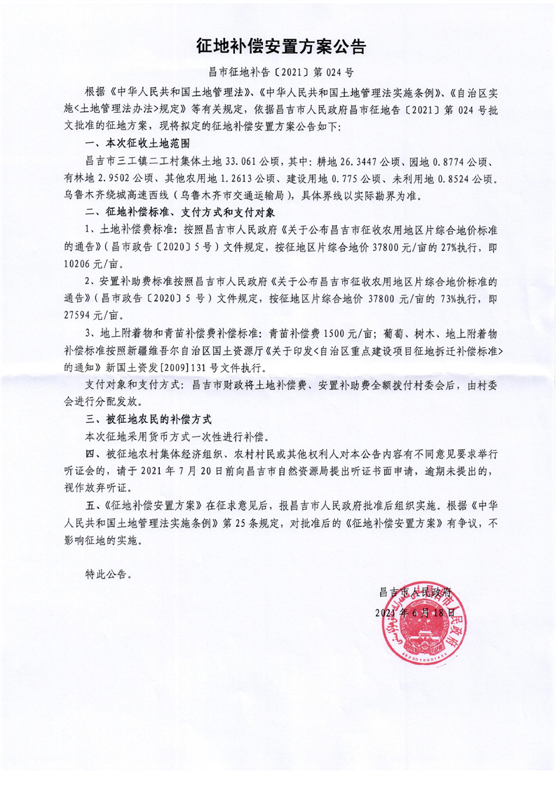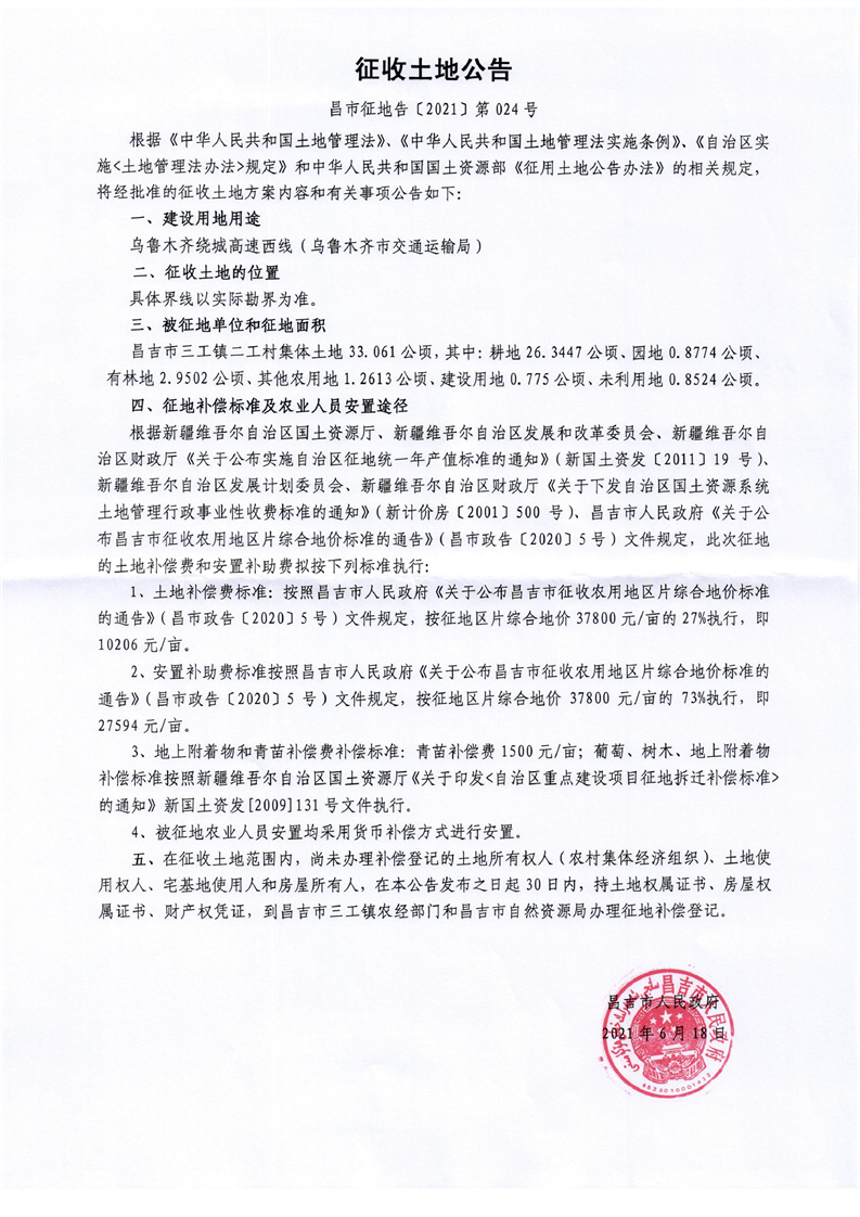 昌市征地告 (2021)第024号