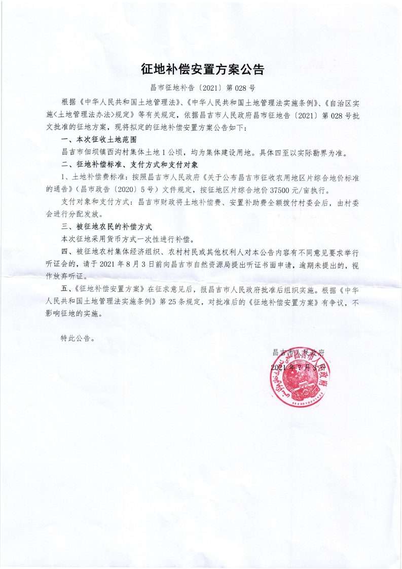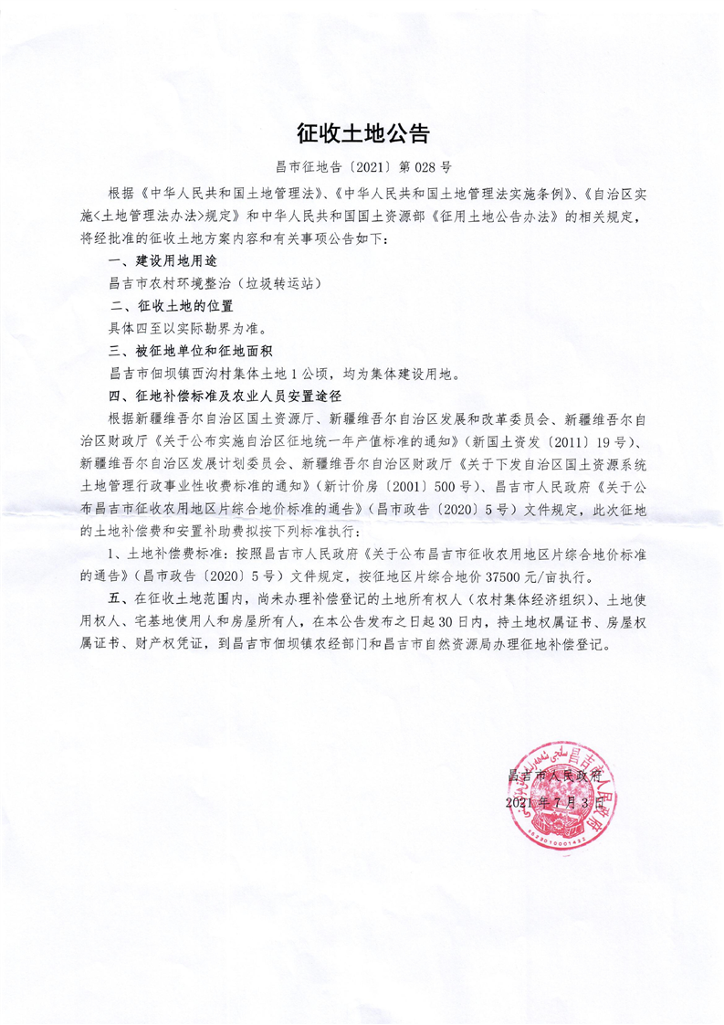 | 名 称 | 昌市征地告 (2021)第028号 | ||