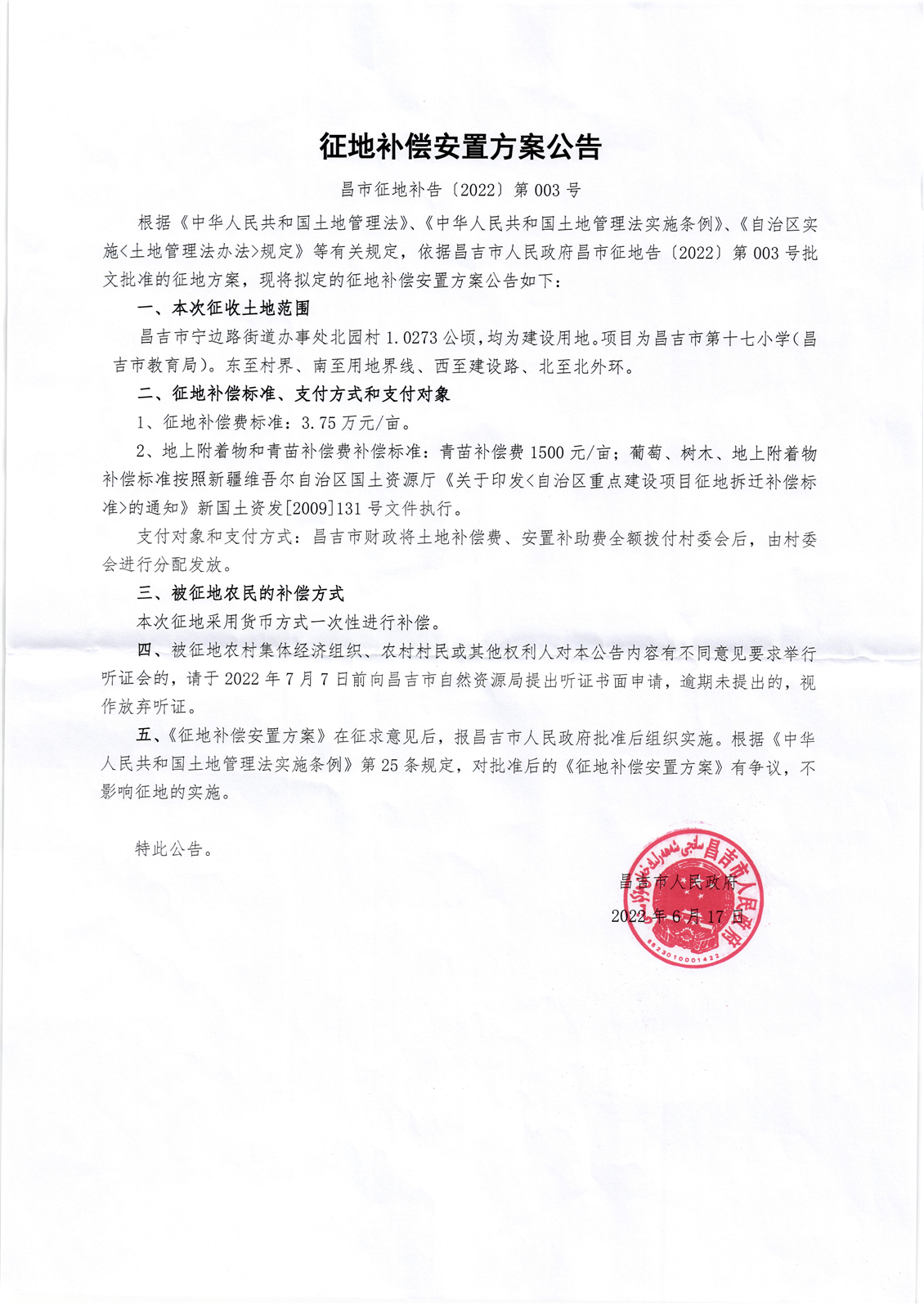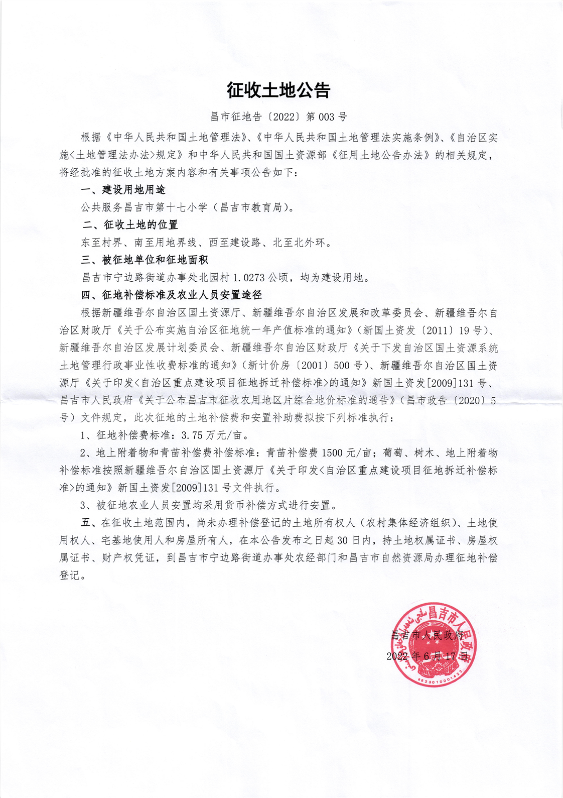 | 名 称 | 昌市征地告 (2022)第003号 | ||