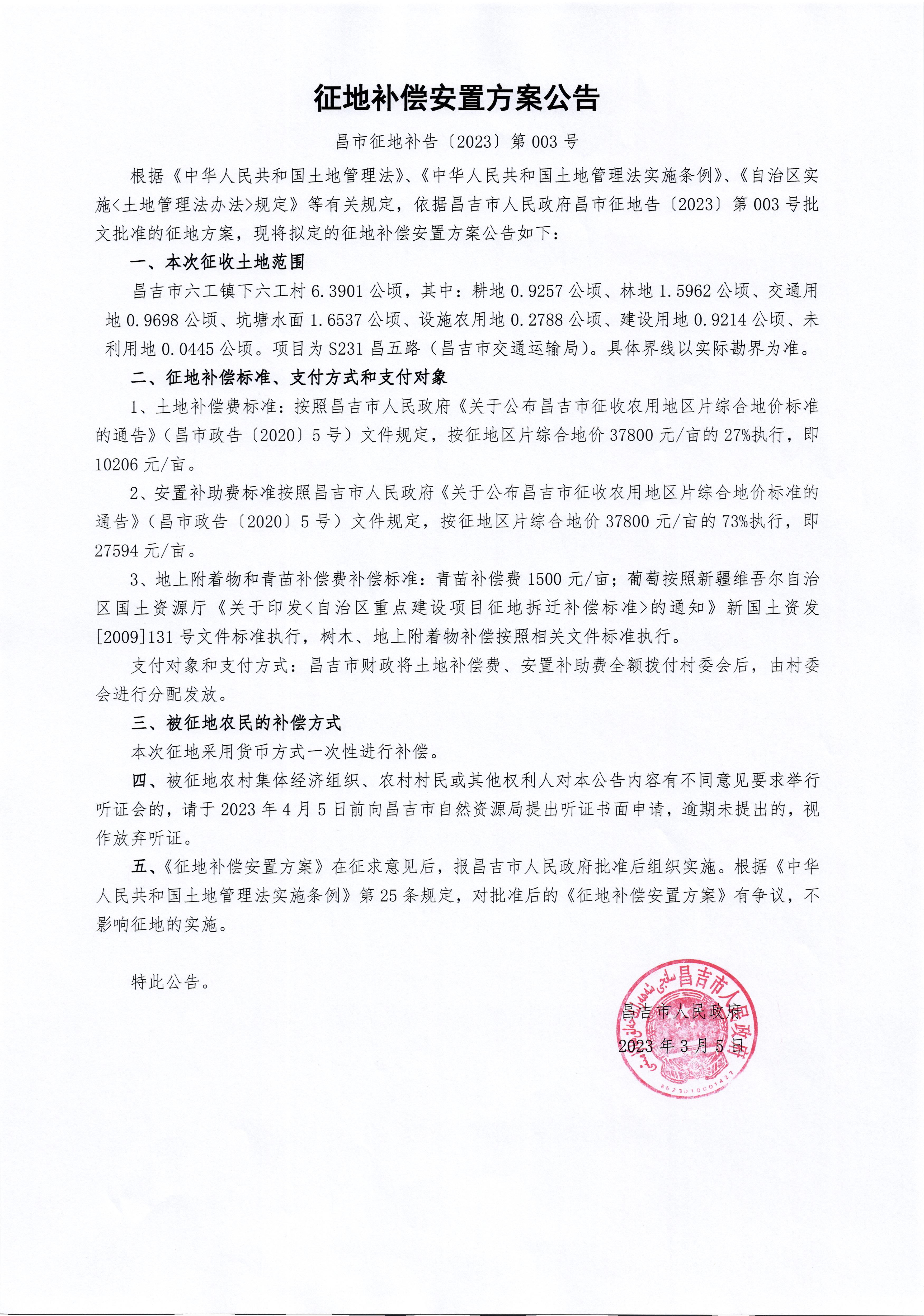 昌市征地补告(2023)第003号