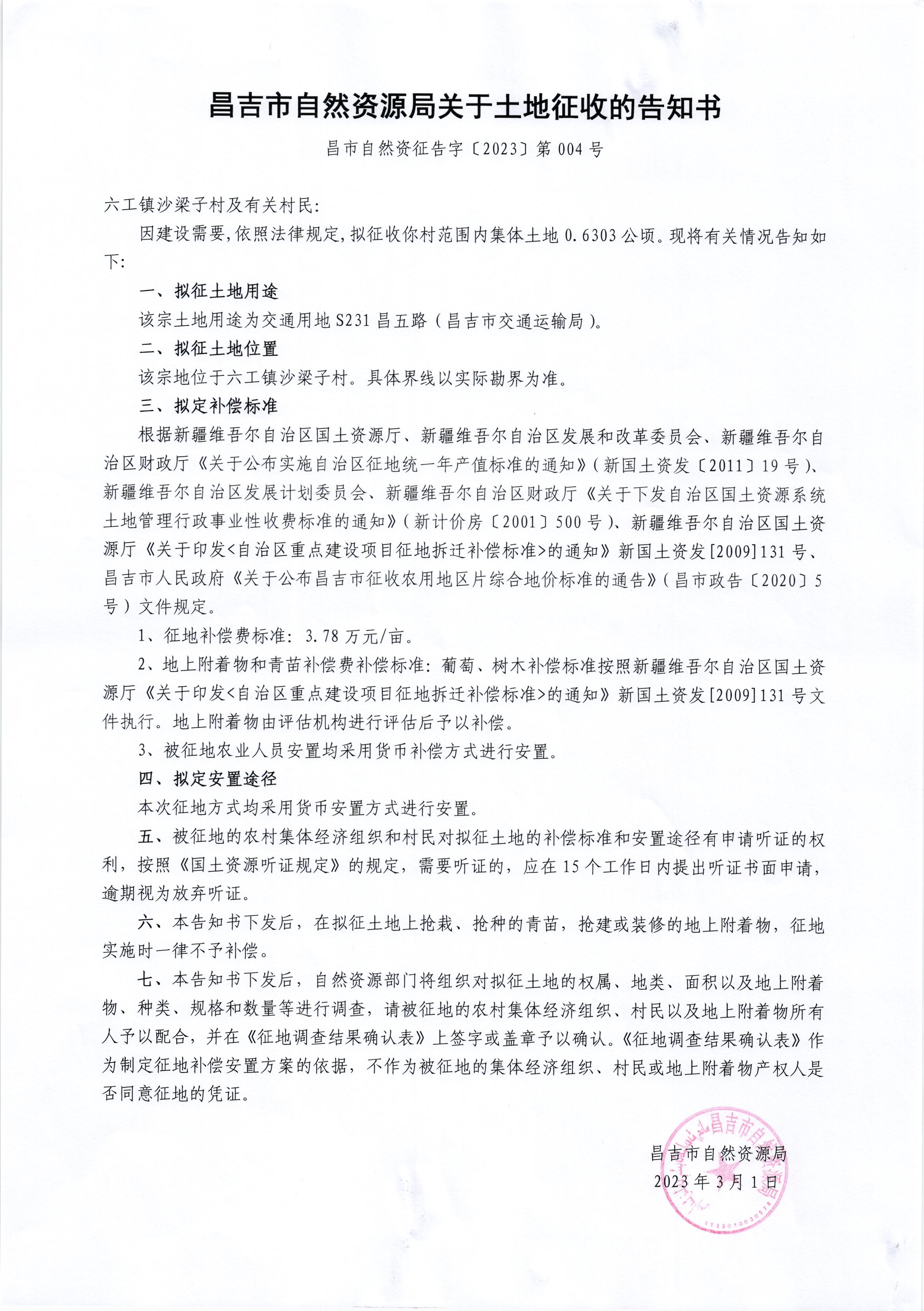 昌市自然资征告字(2023)第004号