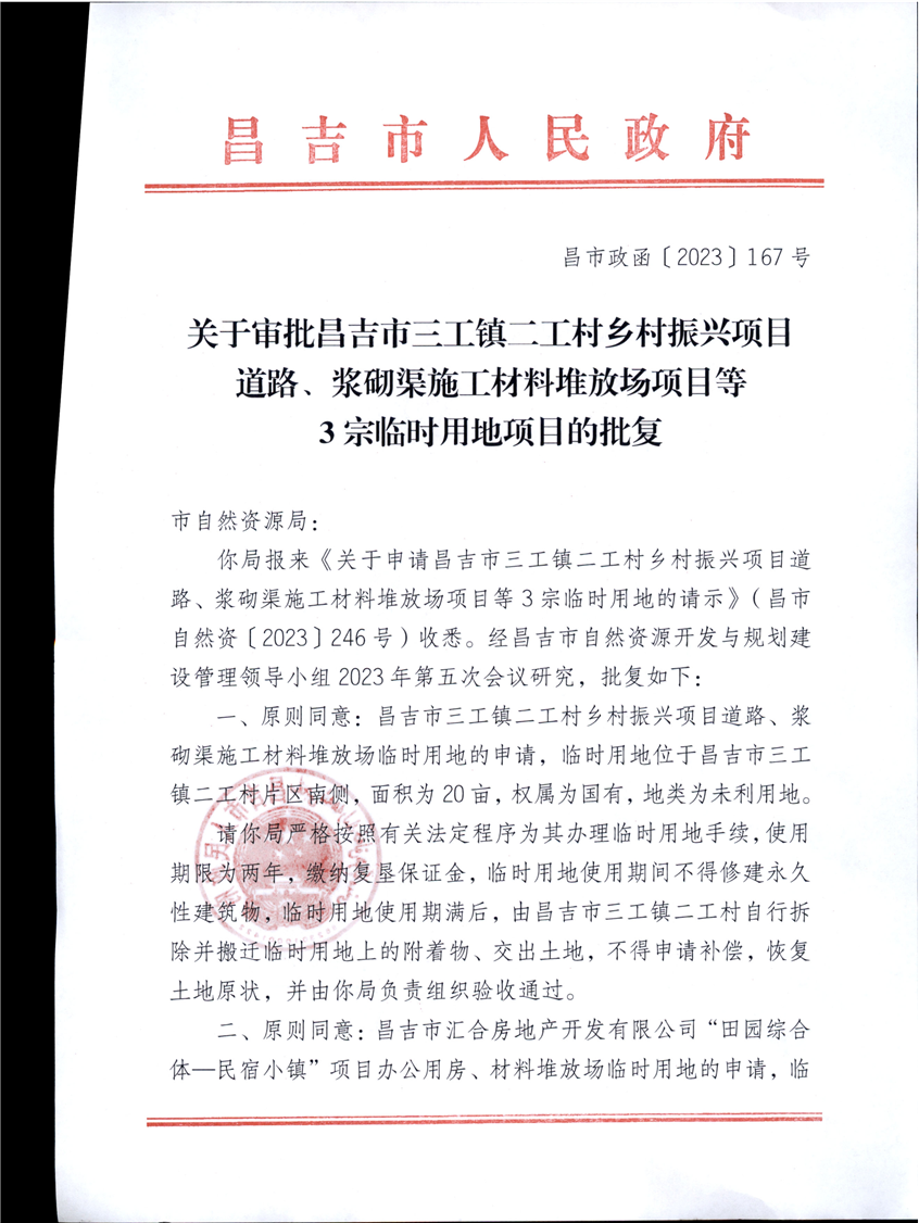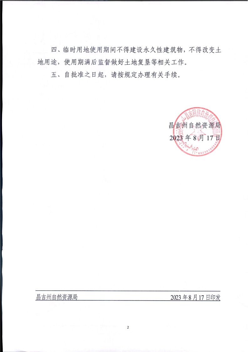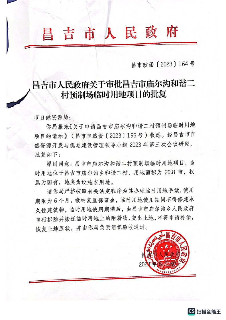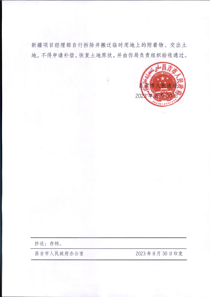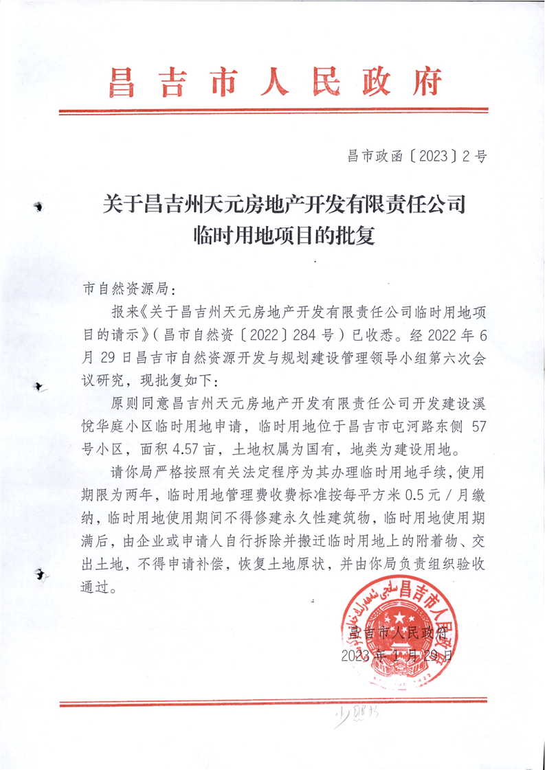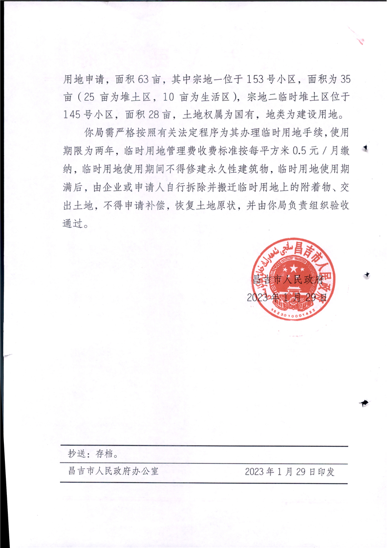 昌吉市自然资源局关于2023年临时用地的批复
