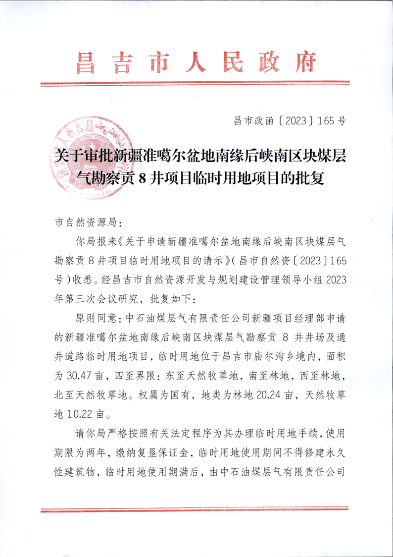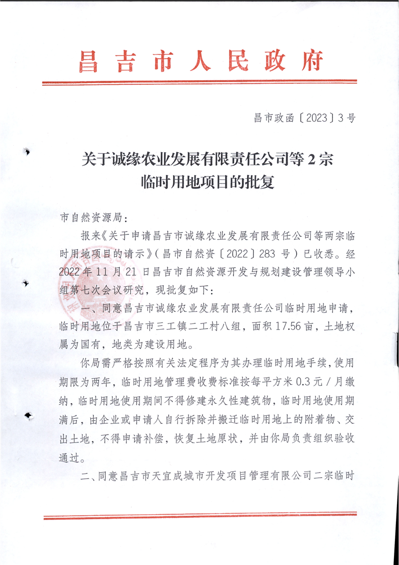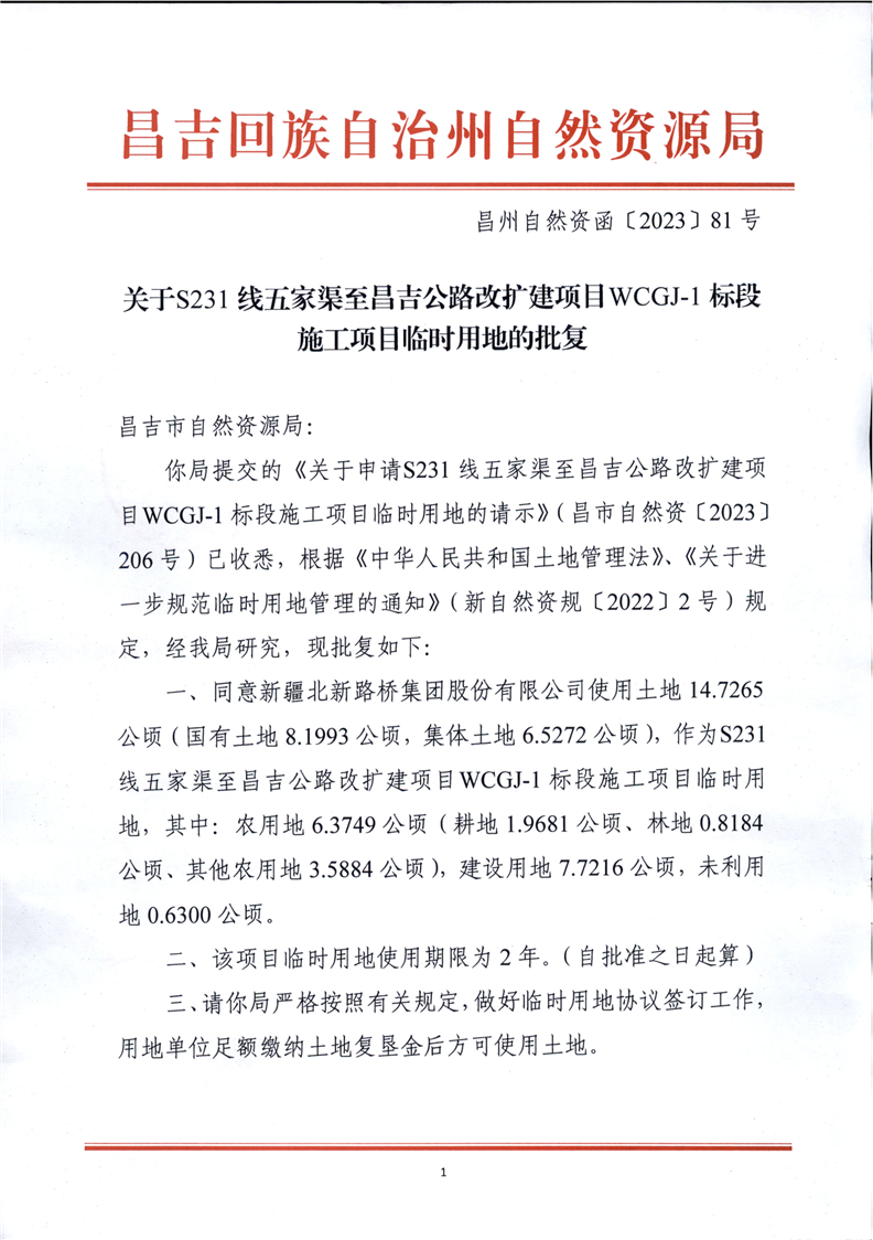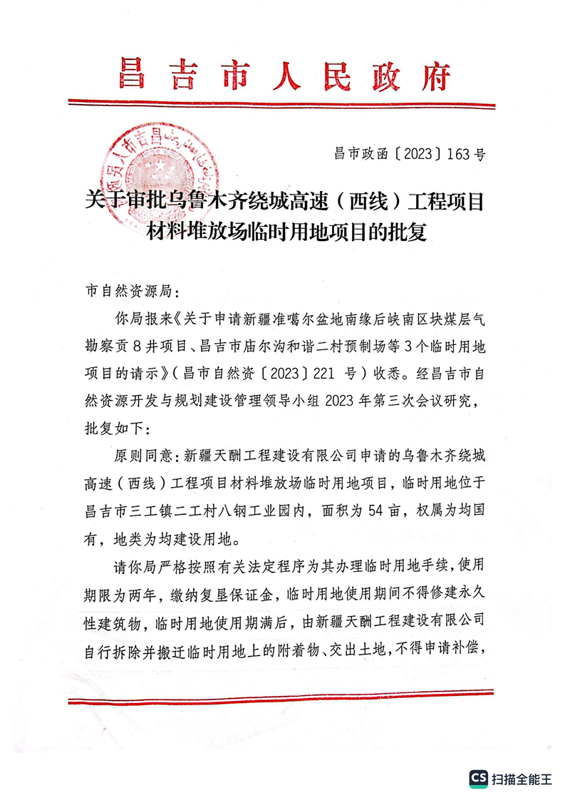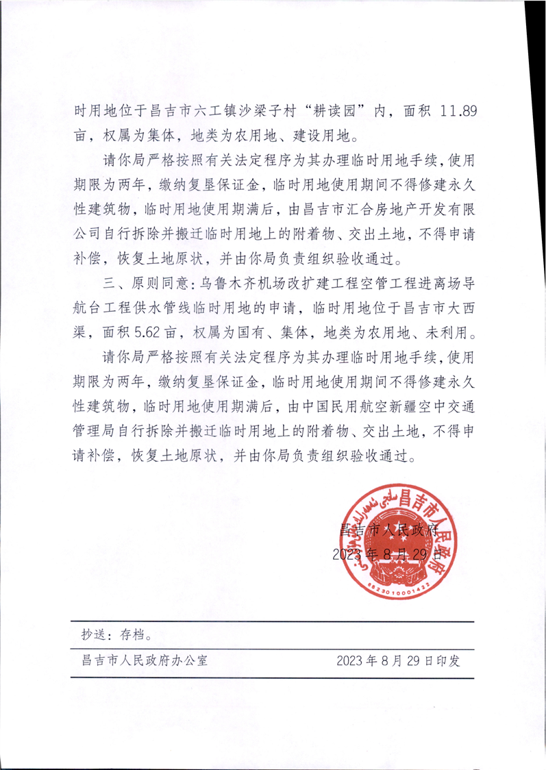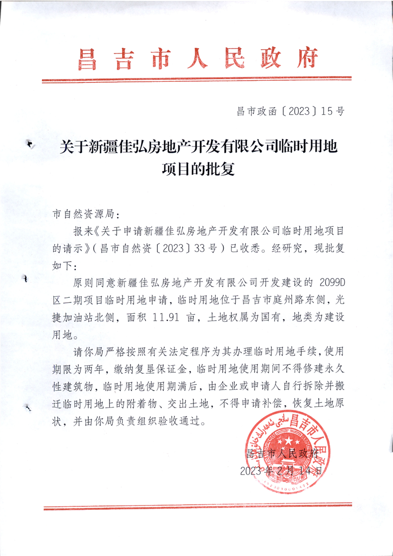 昌吉市自然资源局关于2023年临时用地的批复