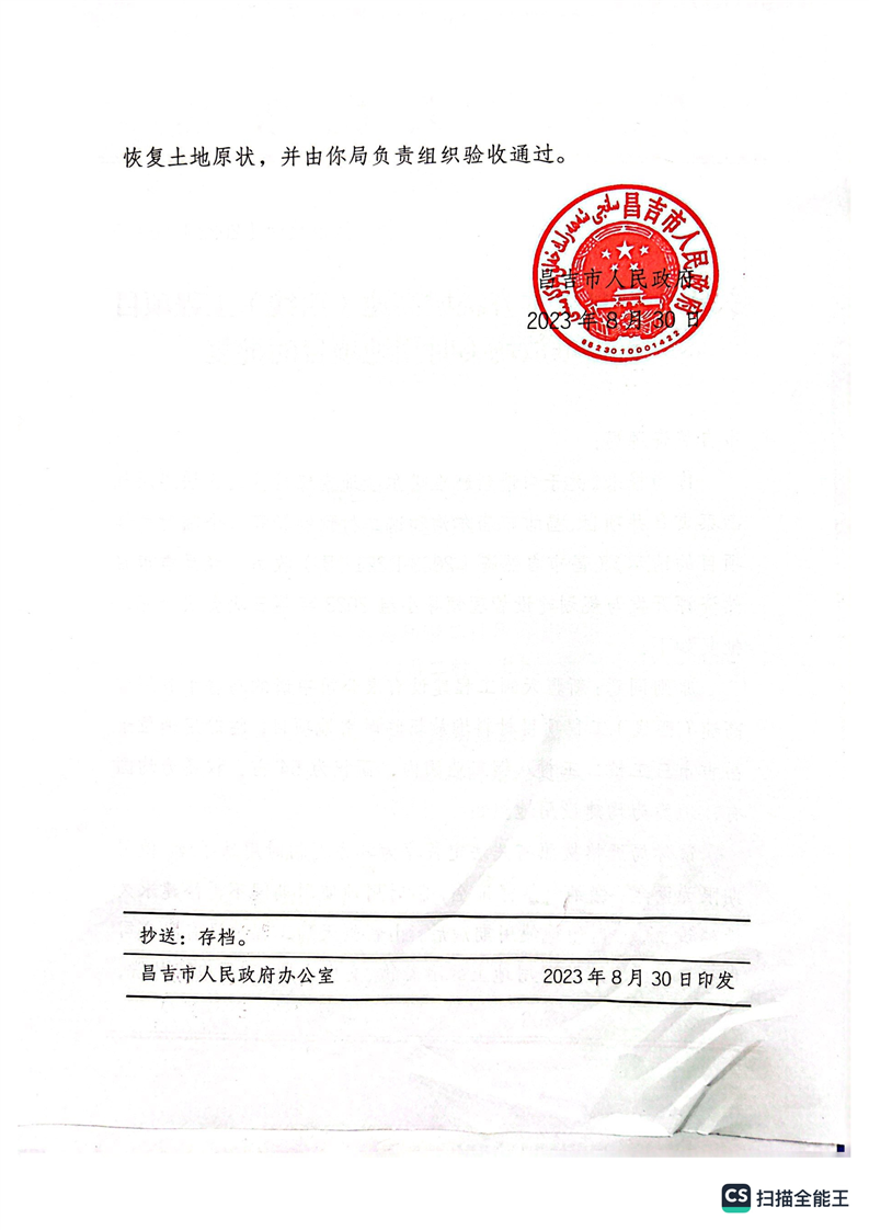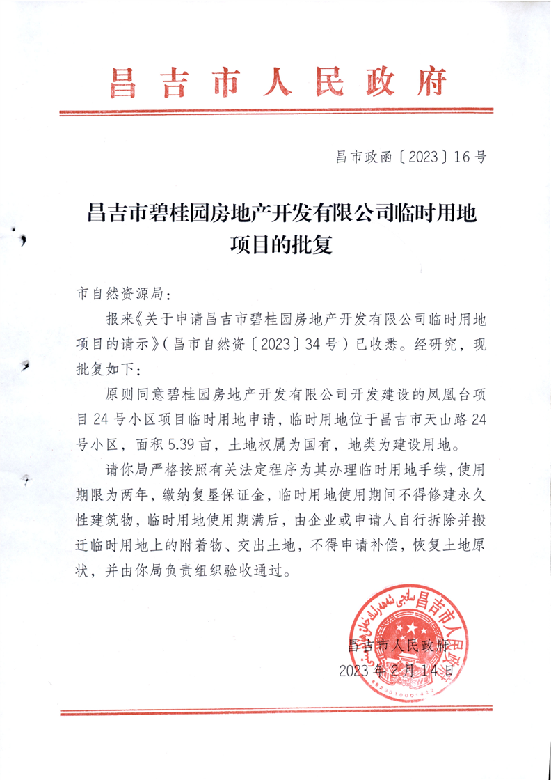 | 名 称 | 昌吉市自然资源局关于2023年临时用地的批复 | ||