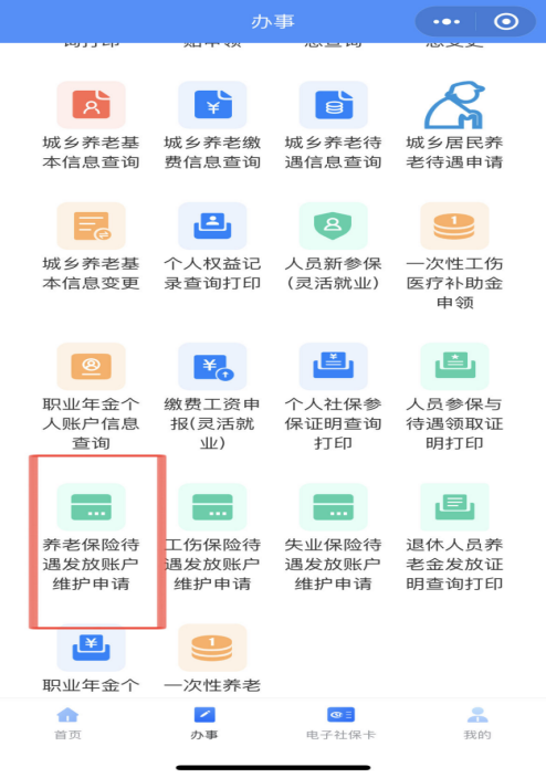 2.点击首页“我要办”,找到“养老保险待遇发放账户维护申请”
