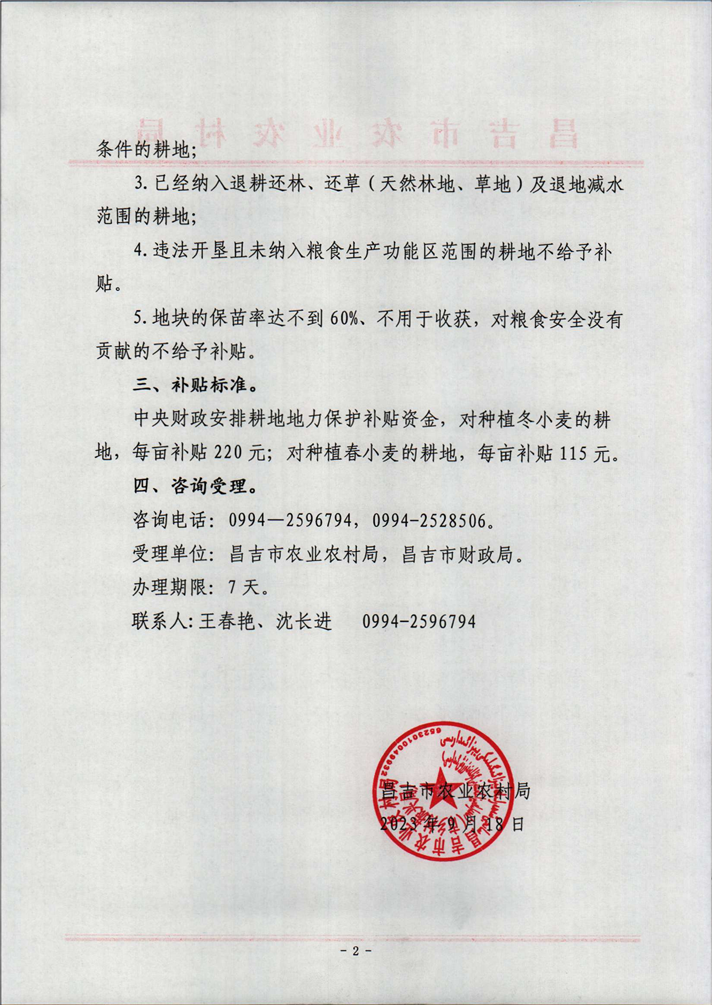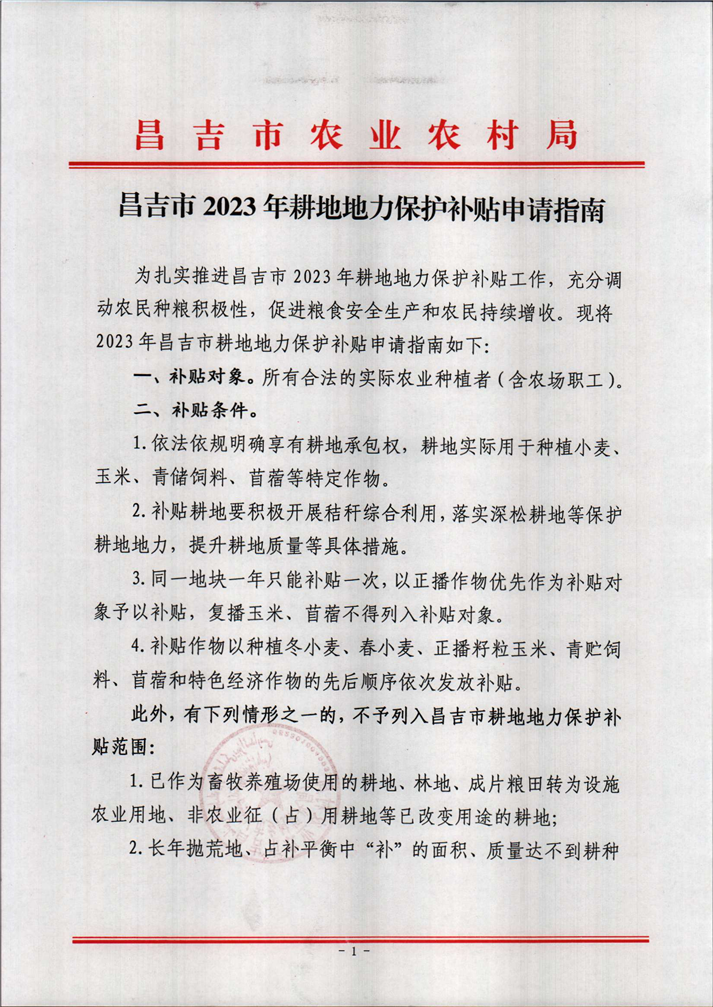 | 名 称 | 【涉农补贴申请指南】昌吉市2023年耕地地力保护补贴申请指南 | ||