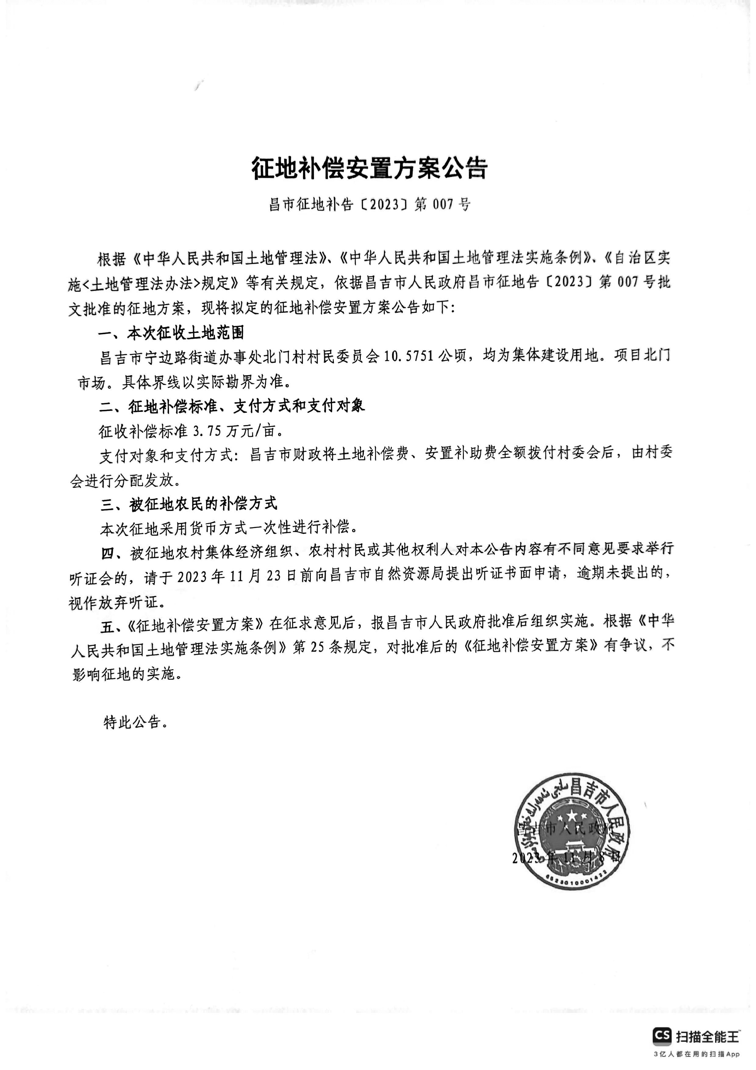 昌市征地补告(2023)第007号