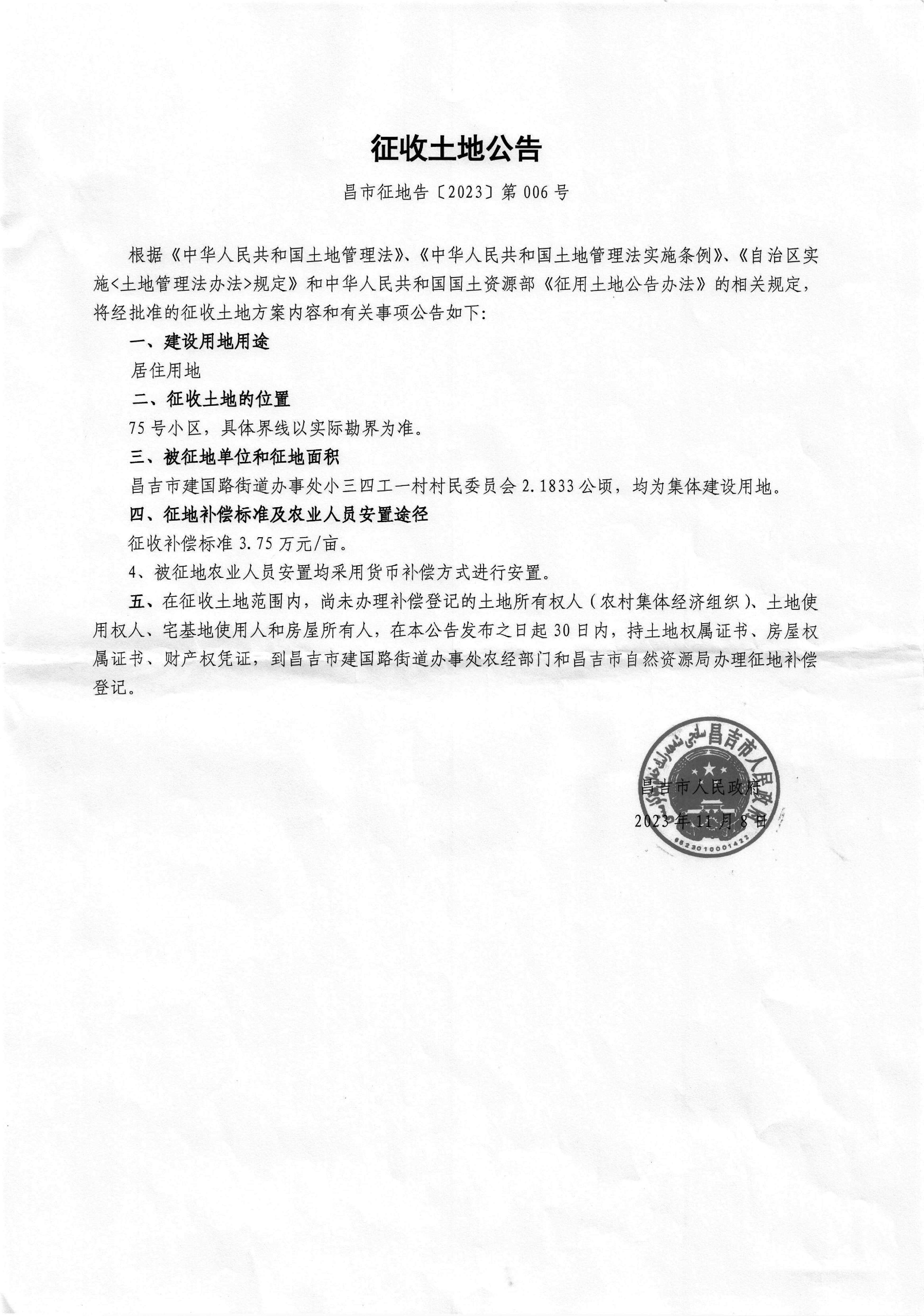| 名 称 | 昌市征地告〔2023〕第 006号 | ||