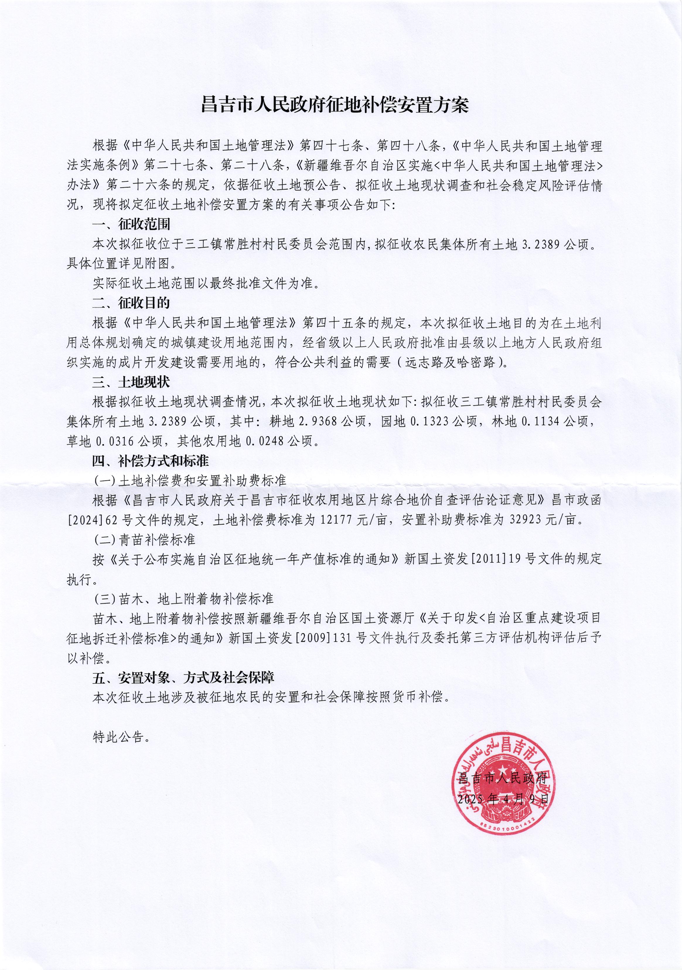 征地补偿安置方案[2025]第007号