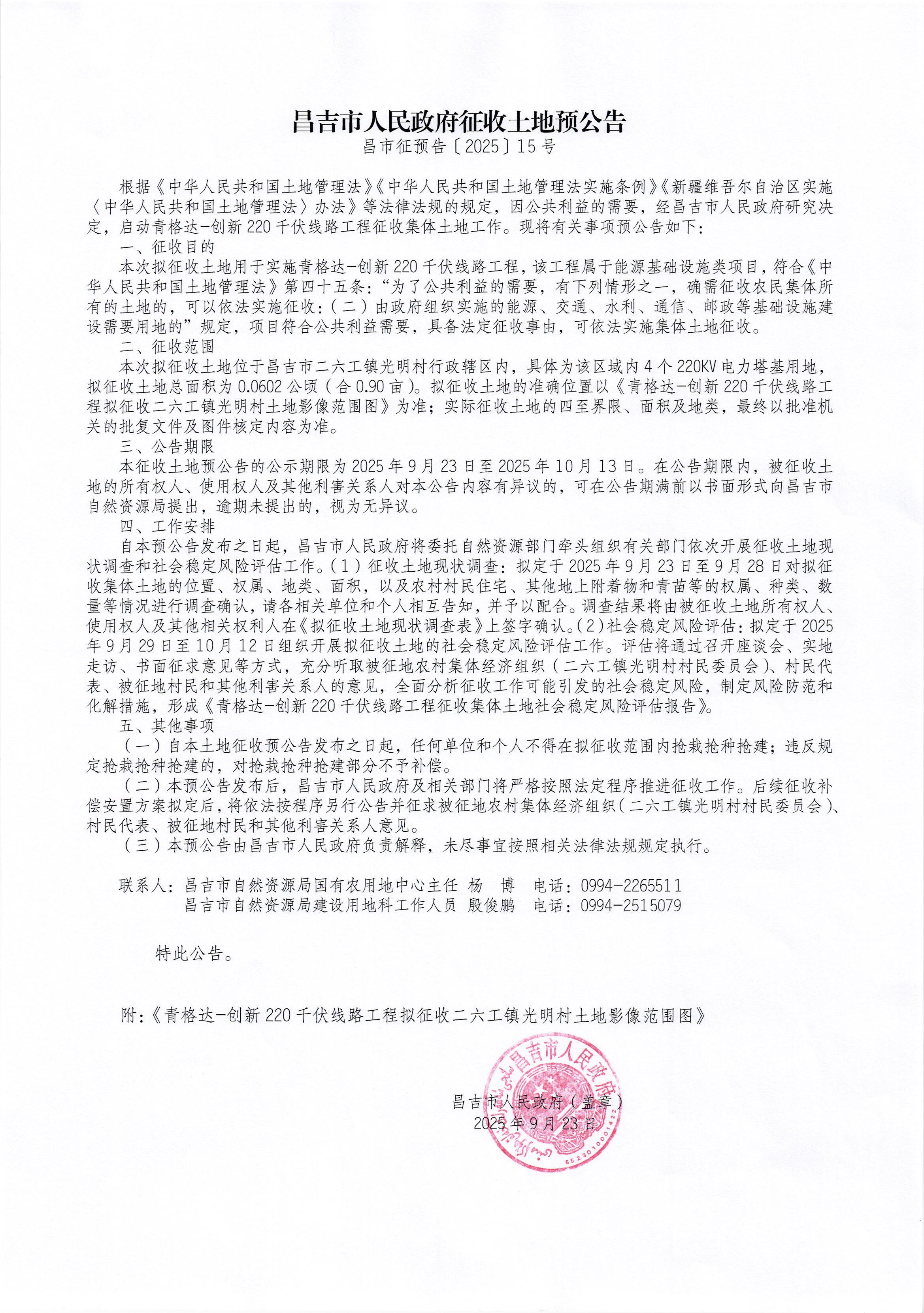 昌市征预告(2025】15号