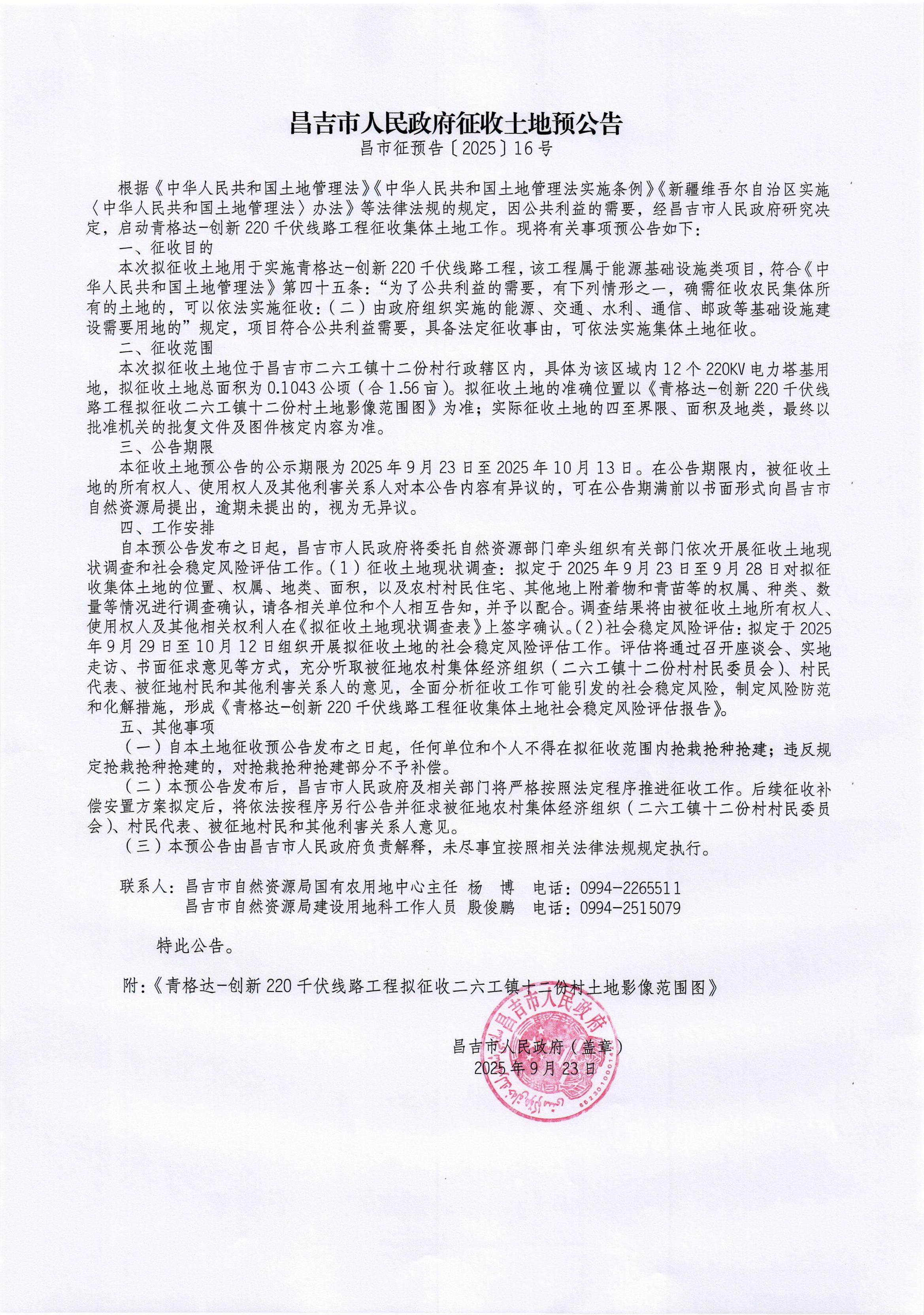 | 名 称 | 昌市征预告(2025】16号 | ||