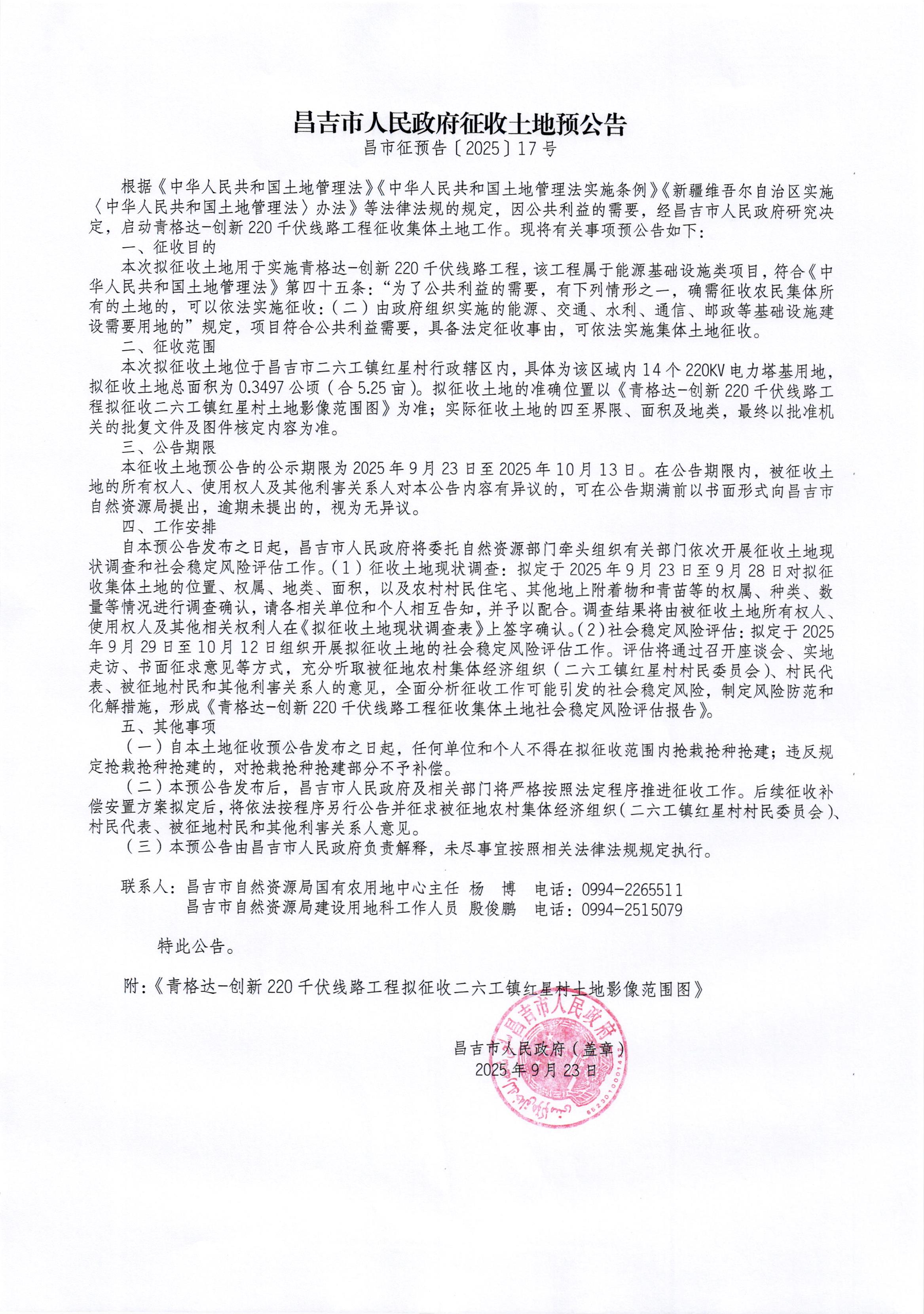 | 名 称 | 昌市征预告(2025】17号 | ||