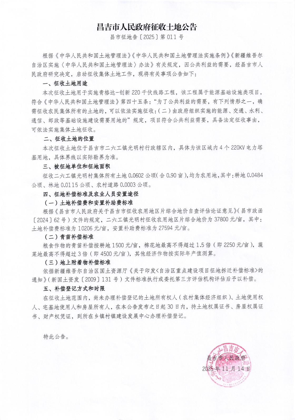 | 名 称 | 【征收土地公告】昌市征地告〔2025〕第011号 | ||