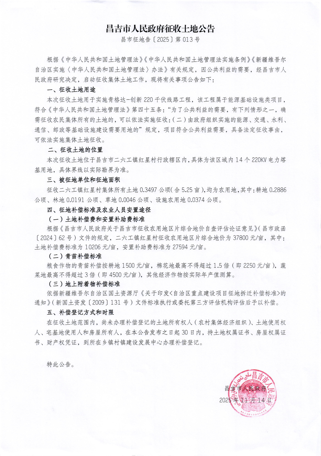 | 名 称 | 【征收土地公告】昌市征地告〔2025〕第013号 | ||
