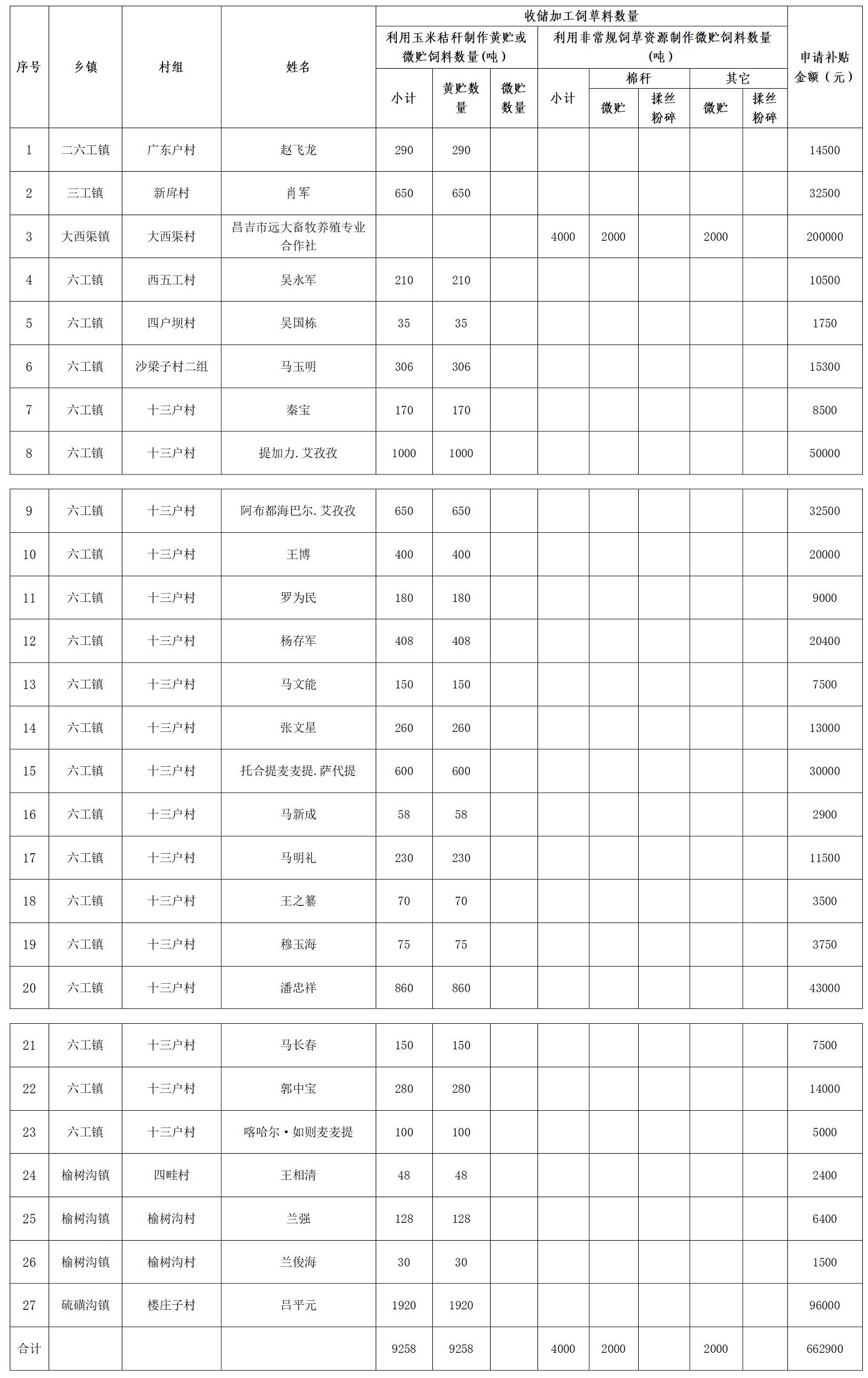 【饲草料补贴公示】昌吉市2025-2026年饲草料补贴资金公示