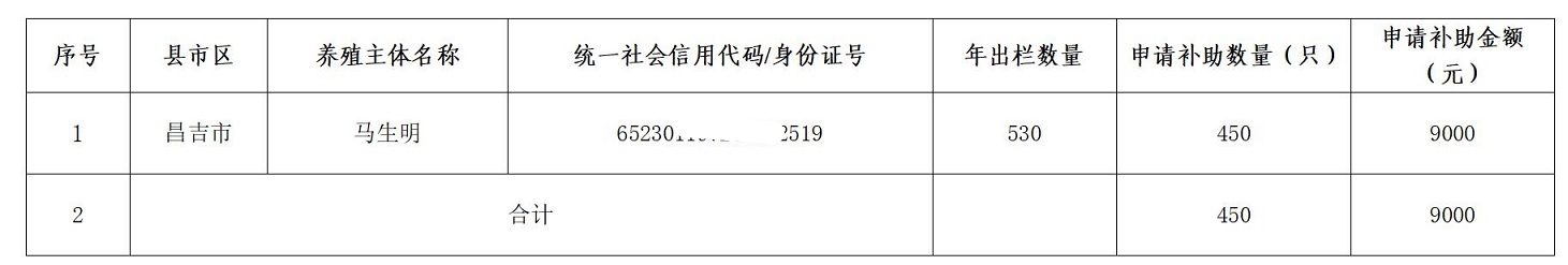【能繁母羊养殖补贴资金公示】昌吉市2025-2026年能繁母羊养殖补贴资金公示