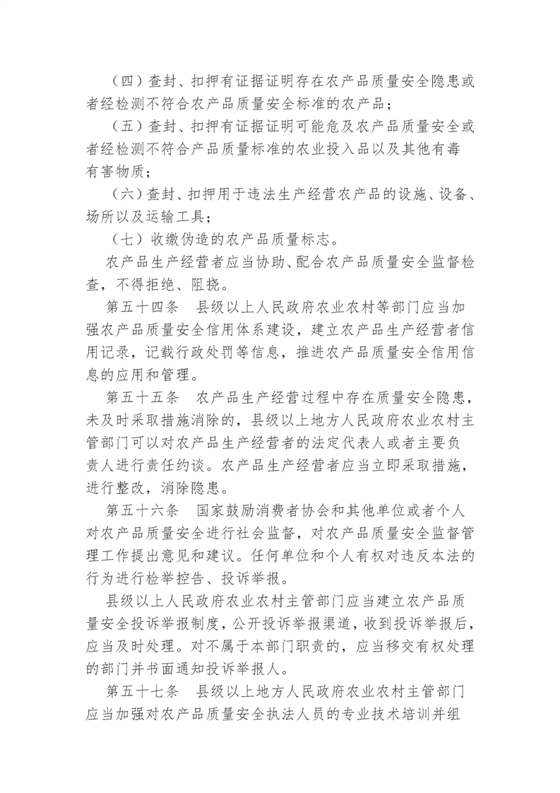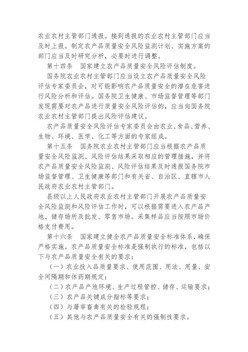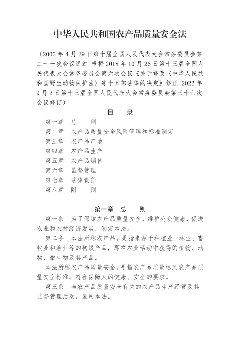 | 名 称 | 中华人民共和国农产品质量安全法 | ||