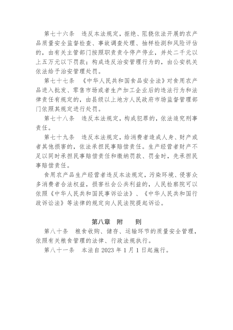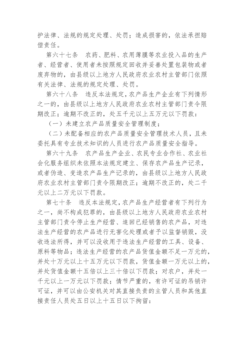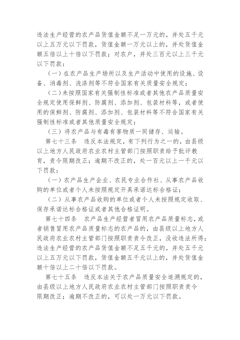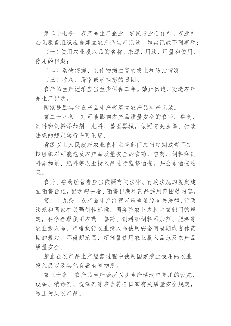 | 名 称 | 中华人民共和国农产品质量安全法 | ||