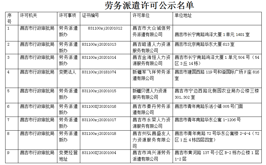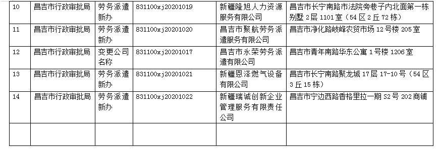 | 名 称 | 劳务派遣许可公示名单 | ||