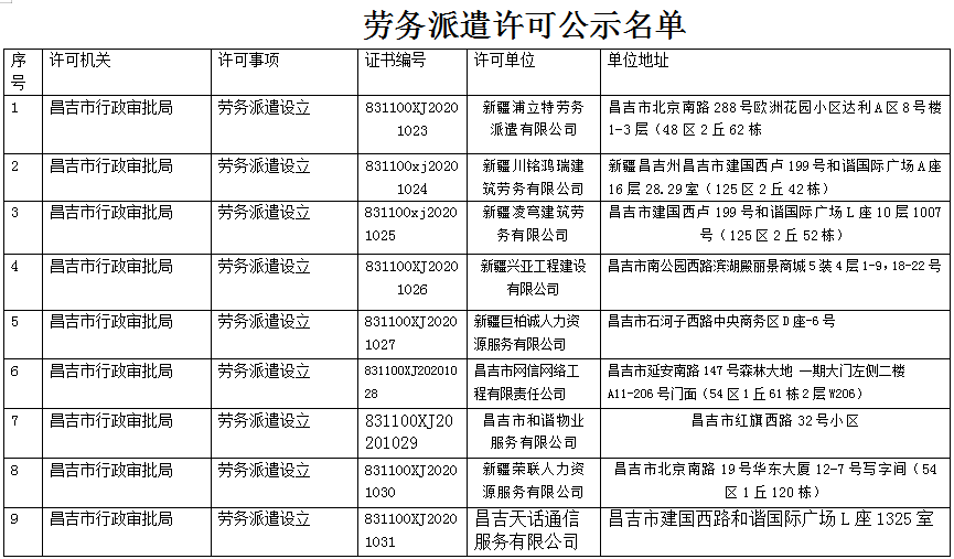 | 名 称 | 劳务派遣许可公示名单 | ||