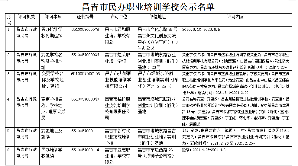民办职业培训学校公示