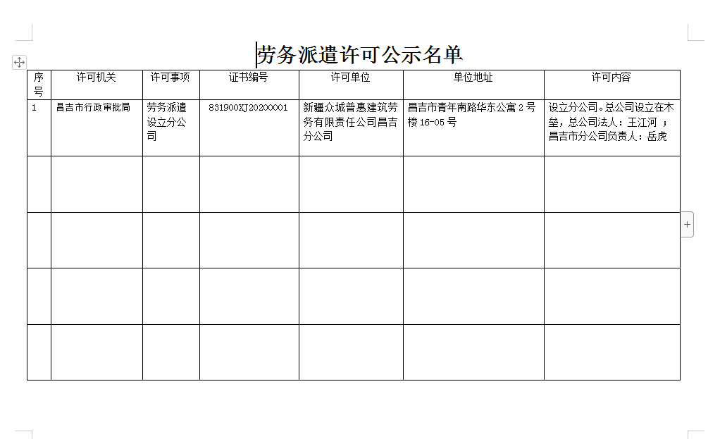 劳务派遣许可公示名单