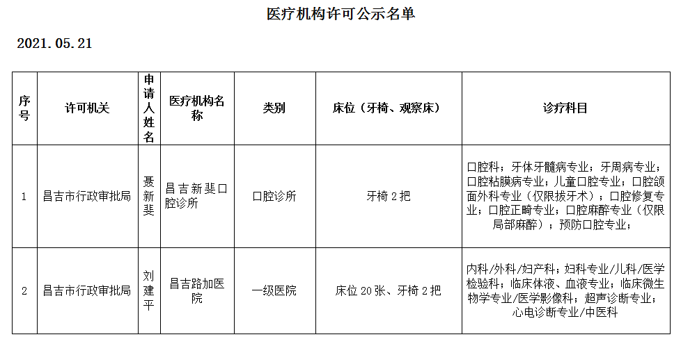 医疗机构公示