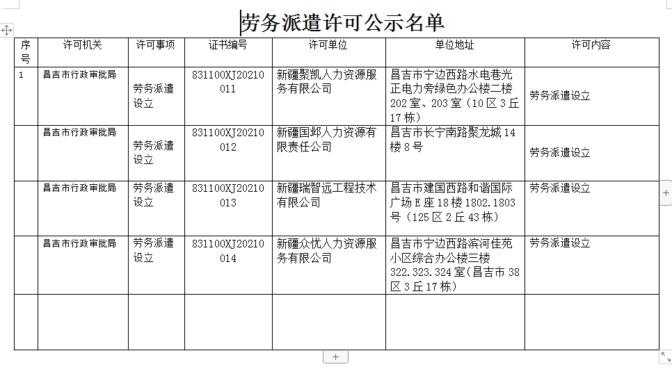 劳务派遣许可公示名单