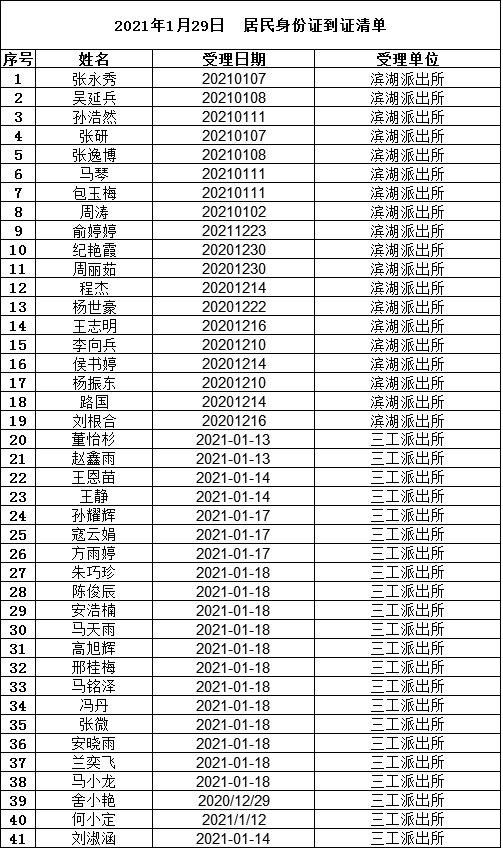 为做好“放管服”工作,昌吉市公安局改进工作薄弱环节,严格落实20个工作日的制发时限,近期在各派出所户籍窗口申请办理的身份证,已制作完成清单附后,如果名单里有您,可以前往指定地点领取。因自治区公安厅制作、寄发批次不同,如果您已申请但不在名单里,请继续关注,后续身份证制证情况将持续更新。