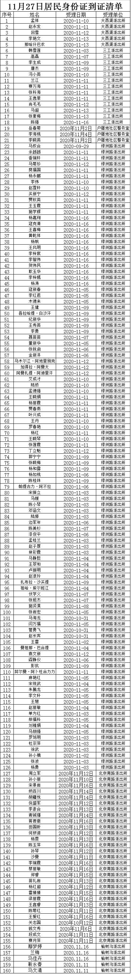 为做好“放管服”工作,昌吉市公安局改进工作薄弱环节,严格落实20个工作日的制发时限,近期在各派出所户籍窗口申请办理的身份证,已制作完成清单附后,如果名单里有您,可以前往指定地点领取。因自治区公安厅制作、寄发批次不同,如果您已申请但不在名单里,请继续关注,后续身份证制证情况将持续更新。