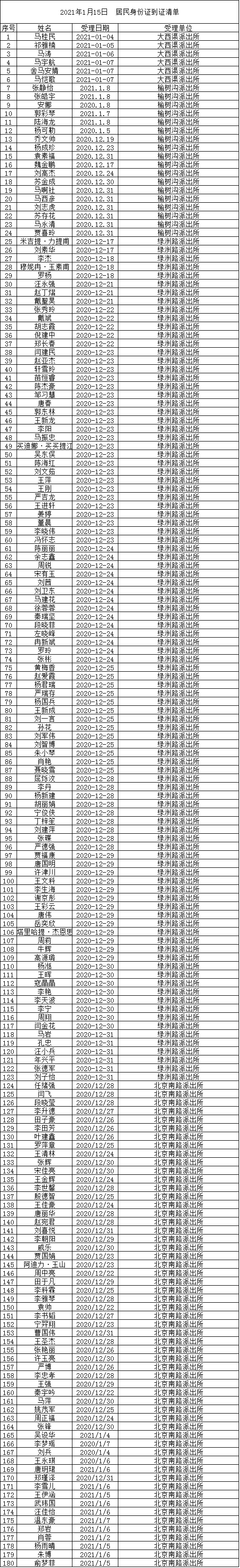 为做好“放管服”工作,昌吉市公安局改进工作薄弱环节,严格落实20个工作日的制发时限,近期在各派出所户籍窗口申请办理的身份证,已制作完成清单附后,如果名单里有您,可以前往指定地点领取。因自治区公安厅制作、寄发批次不同,如果您已申请但不在名单里,请继续关注,后续身份证制证情况将持续更新。