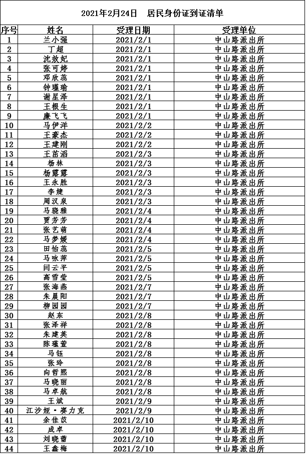 为做好“放管服”工作,昌吉市公安局改进工作薄弱环节,严格落实20个工作日的制发时限,近期在各派出所户籍窗口申请办理的身份证,已制作完成清单附后,如果名单里有您,可以前往指定地点领取。因自治区公安厅制作、寄发批次不同,如果您已申请但不在名单里,请继续关注,后续身份证制证情况将持续更新。