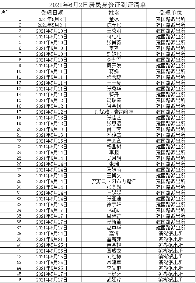 为做好“放管服”工作,昌吉市公安局改进工作薄弱环节,严格落实20个工作日的制发时限,近期在各派出所户籍窗口申请办理的身份证,已制作完成清单附后,如果名单里有您,可以前往指定地点领取。因自治区公安厅制作、寄发批次不同,如果您已申请但不在名单里,请继续关注,后续身份证制证情况将持续更新。