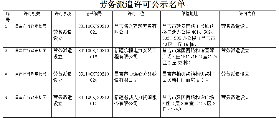 劳务派遣许可公示名单
