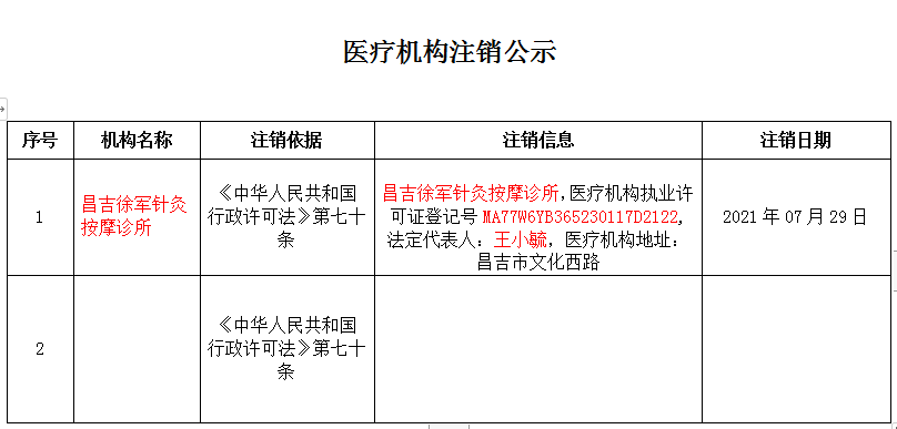 医疗机构注销公示