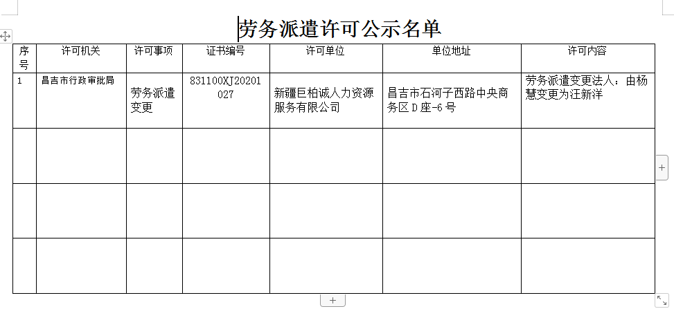 劳务派遣许可公示名单