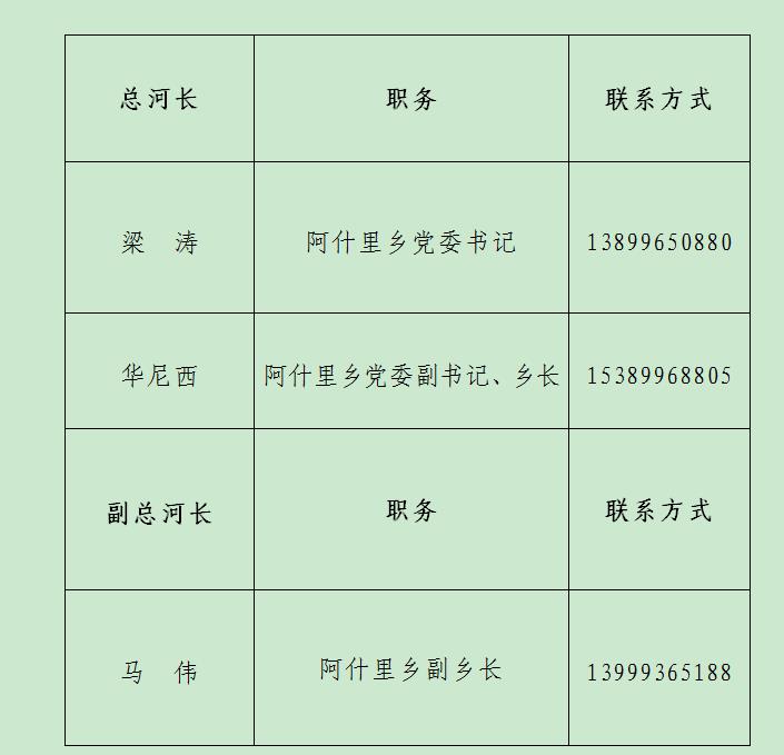 阿什里乡总河长、副总河长组织体系